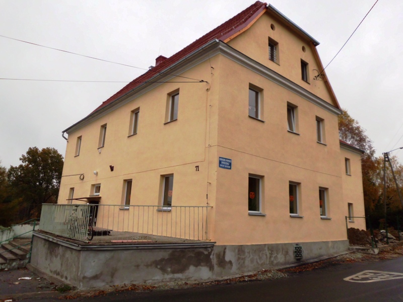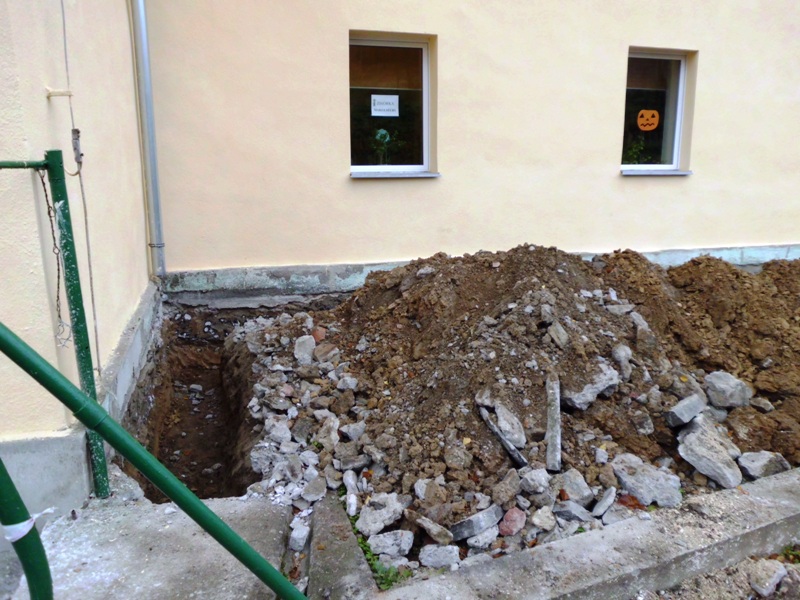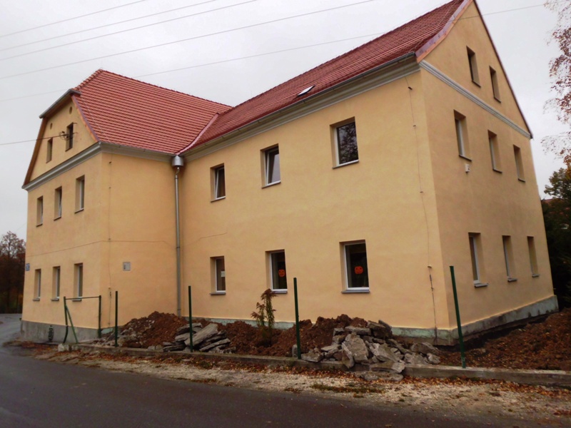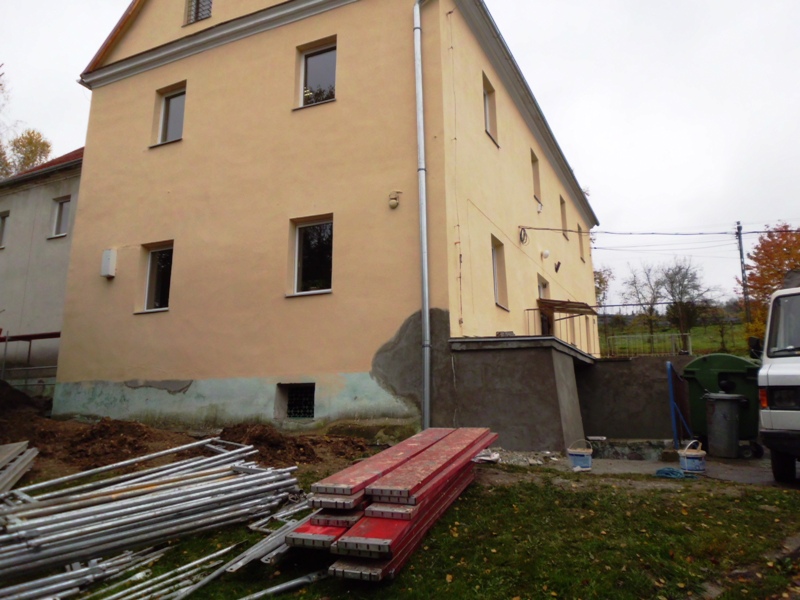 We wrześniu odebrany został pierwszy etap, którego efektem jest nowe pokrycie dachowe, jak na załączonym obrazku. Od października prowadzony jest drugi etap, a są to wykonanie nowej elewacji oraz drenaż budynku. Postęp prac jest widoczny jak na dłoni. Społeczność lokalna obserwuje postęp robót i ocenia je pozytywnie.