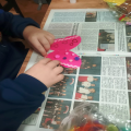 Warsztaty zakończyły się wspólnym podziwianiem prac i krótką rozmową o tym, komu młodzi twórcy podarują swoje wyjątkowe motylki.