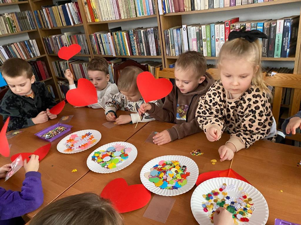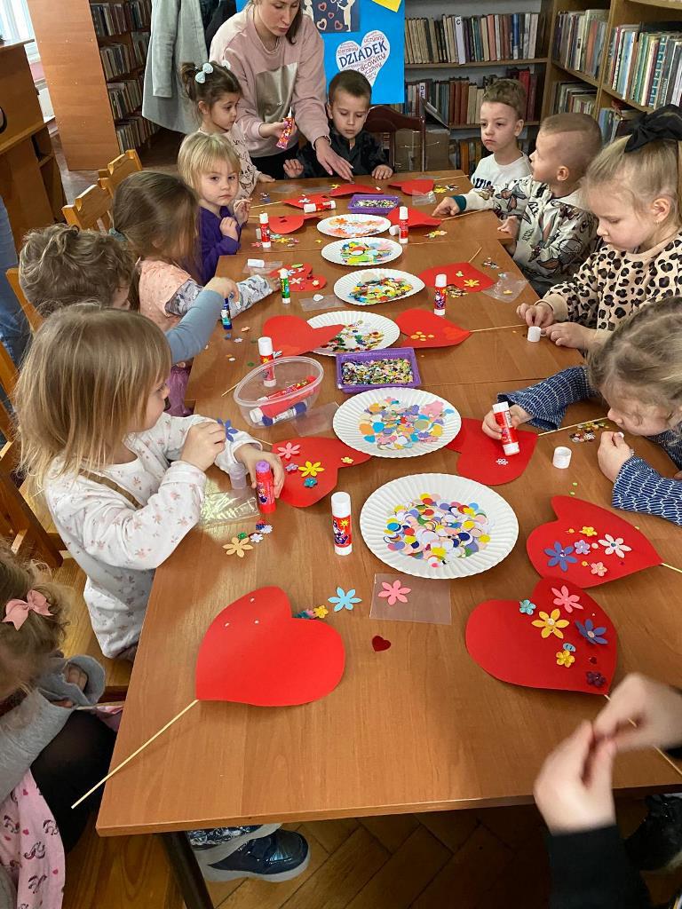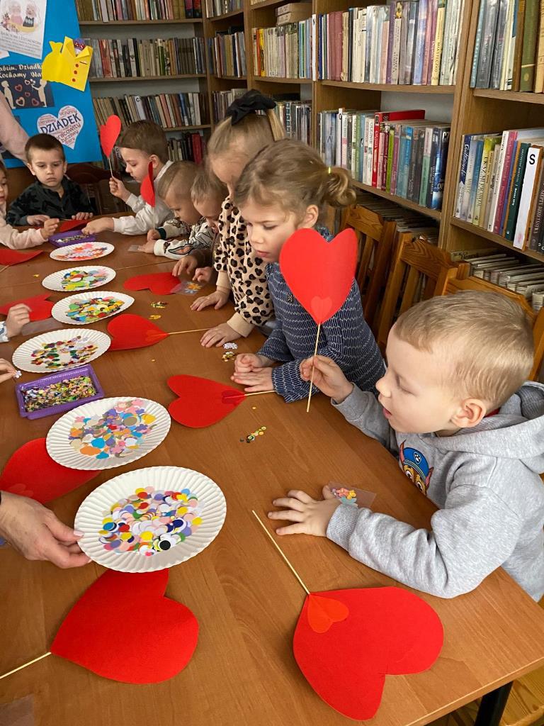 Dziecięce kółko literacko-plastyczne przy Filii nr 2 Biblioteki Publicznej Gminy Kłodzko w Krosnowicach spotkało się 21 stycznia, aby wykonać serduszko dla babci i dziadka. Zajęcia poprowadziła bibliotekarka Roma.