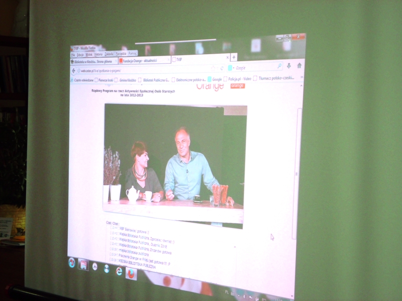 Biblioteka Publiczna Gminy Kłodzko jest uczestnikiem projektu edukacyjno-animacyjnego dla seniorów, realizowanego przez Fundację Orange z grantu finansowego otrzymanego od Ministerstwa Pracy i Polityki Społecznej. Projekt ten zakłada przeprowadzenie na żywo w bibliotekach 12 spotkań online w formie wideo konferencji ze znanymi seniorom z ekranu telewizyjnego osobami-specjalistami z różnych dziedzin.