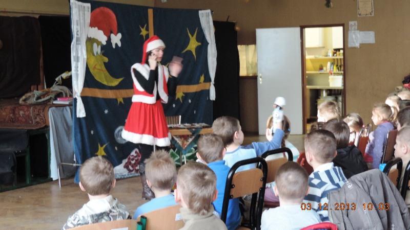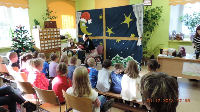 Na czas przedświąteczny Biblioteka Publiczna Gminy Kłodzko zaprosiła najmłodszych czytelników na spektakl związany tematycznie z tym okresem. Na scenie wystąpili aktorzy Teatru Edukacji i Profilaktyki Maska z Krakowa. Dzieci wzięły udział także w małych warsztatach edukacji teatralnej w bajecznych kącikach bibliotecznych.