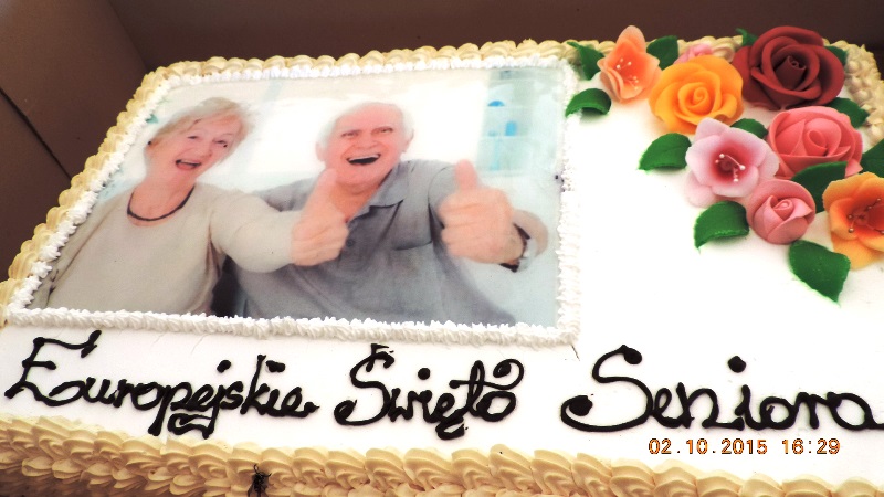 Pomiędzy poszczególnymi atrakcjami serwowano okazały tort z napisem „Europejski Dzień Seniora” wypieczony przez Przedsiębiorstwo Piekarniczo-Cukiernicze Machela oraz pyszne ciasta według receptur pań Ewy, Halinki i Kazimiery.