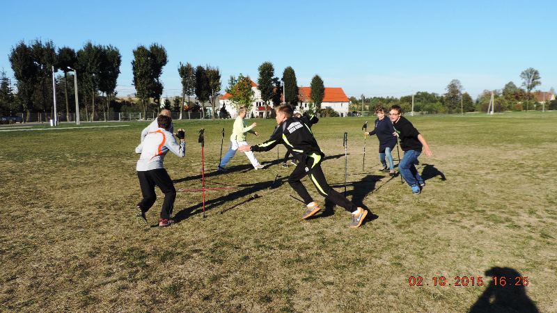 Na początek organizatorzy zaprosili seniorów oraz ich wnuki w każdym wieku na spotkanie z mistrzem nordic walking panem Mariuszem Nowakiem. Trening na pobliskim boisku sportowym oraz osobista zachęta pana Mariusza ożywiły towarzystwo i zaostrzyły apetyty na pyszne kiełbaski z grilla.