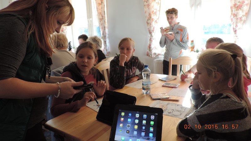 Przez cały czas bibliotekarka Agata Maślanka zapraszała do interaktywnego kącika do korzystania z różnorodnych aplikacji i narzędzi w ramach realizowanego projektu „Master tablet w bibliotece”.