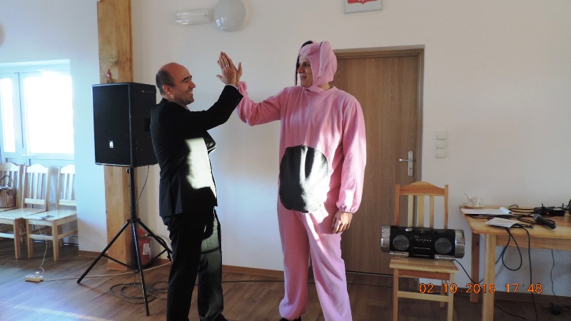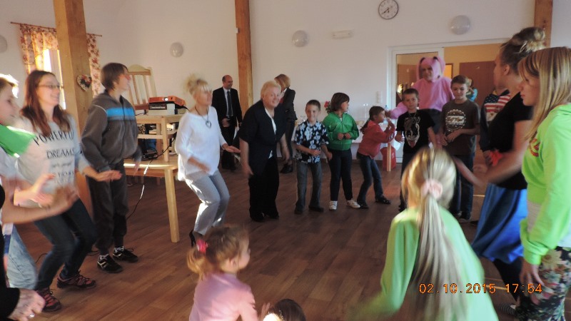 Zabawa z aktorami Teatru „Maska” z Krakowa była niewątpliwie „gwoździem” programu i sprawiła wszystkim wiele radości, tym bardziej, że okazało się, iż wśród zaproszonych byli również wychowankowie Domu Dziecka z Kłodzka. Na parkiecie w rytmach „jedzie pociąg” zauważyć można było pana Wójta, panią Mariolę Huzar – dyrektora Biblioteki Publicznej Gminy Kłodzko oraz panie seniorki.