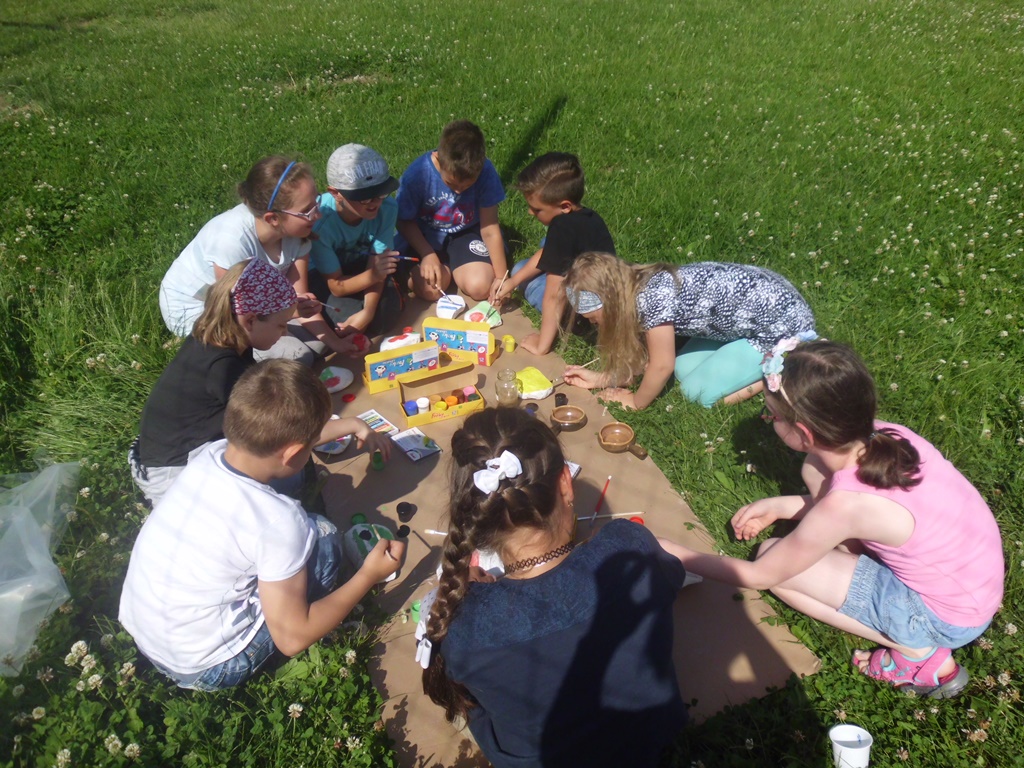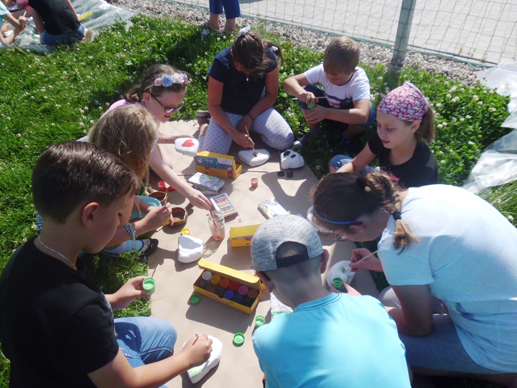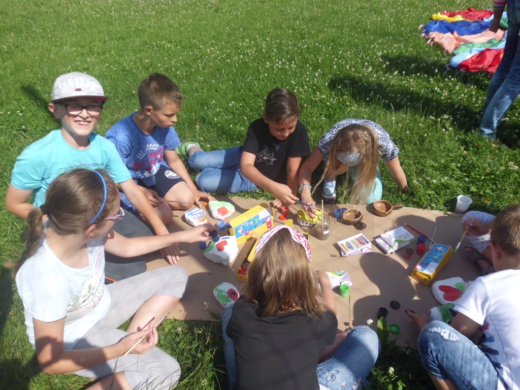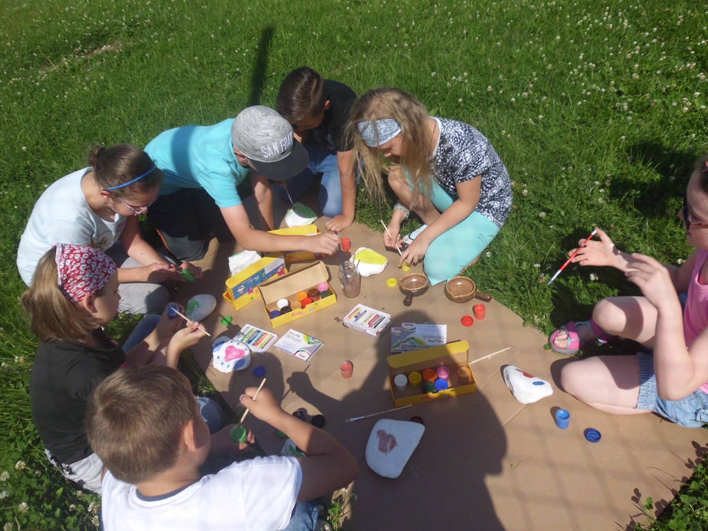 Oryginalnym zakończeniem roku szkolnego mogą się pochwalić uczniowie klasy 3 b z Zespołu Szkół Integracyjnych w Kłodzku. Przyjechali na warsztaty malowania kamieni polnych do biblioteki w Starym Wielisławiu. Dzieciaki świetnie się bawiły „na kocyku”, pomysłowości i inspiracji nie było końca… Kamienie malowane były farbami wodnymi, ale również były wykańczane pastelami. Powstały prawdziwe dzieła sztuki.