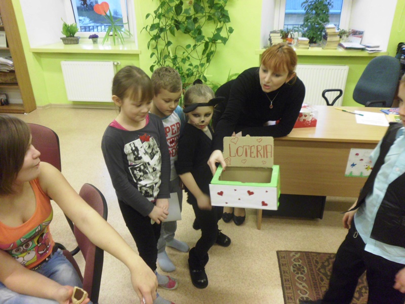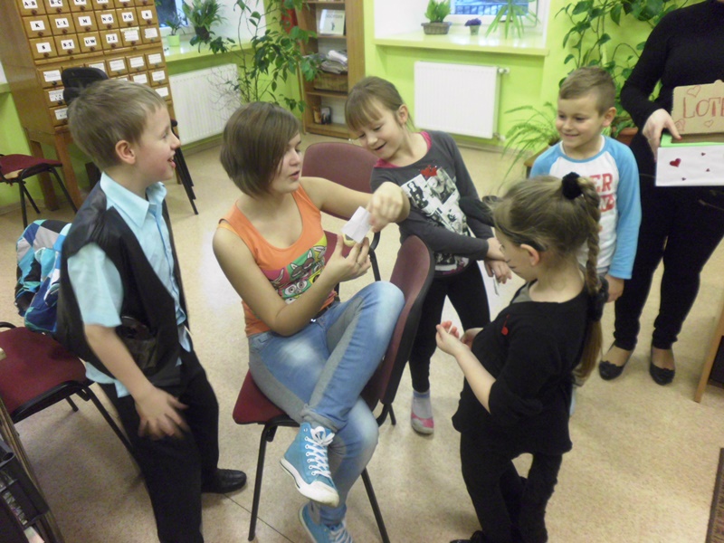 W bibliotece w Wojciechowicach było wszystkiego po troszku. Najmłodsi tworzyli serduszka z masy solnej, w której odbijali swoje małe rączki i dlatego nie zdążyli ich pomalować. Obiecują, że nadrobią . Starsi czytelnicy zajęli się kalamburami, potem przystąpili do gry „Życie” i „Kocham Cię Polsko”. Stałe bywalczynie zapewniły oprawę artystyczną spotkania, grając na gitarze w rytmie miłości i śpiewając o uczuciach do kogoś tam… Naj… parą zostali Dawid i Monika.