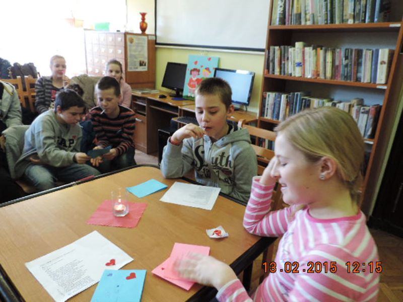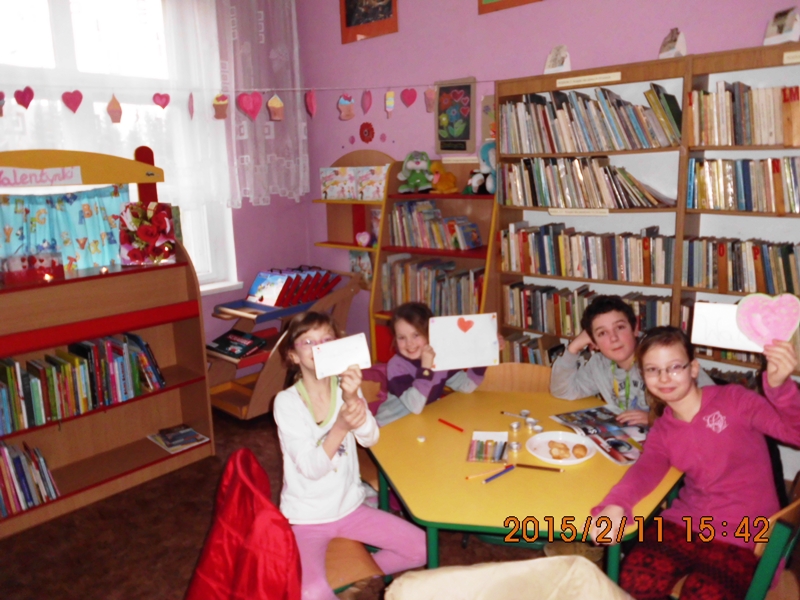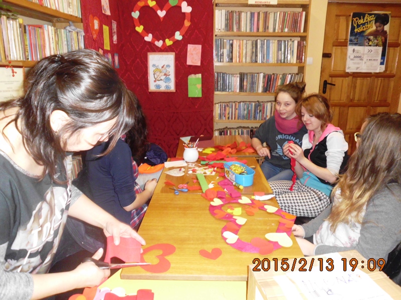 W bibliotece w Jaszkowej Górnej motywem przewodnim była miłość na ekranie, miłość w książce i miłość w życiu codziennym. Dzieci własnoręcznie wykonywały kartki walentynkowe. Był słodki bufet. Atrakcją spotkania: loteria walentynkowa, której hitem były piękne kubki.