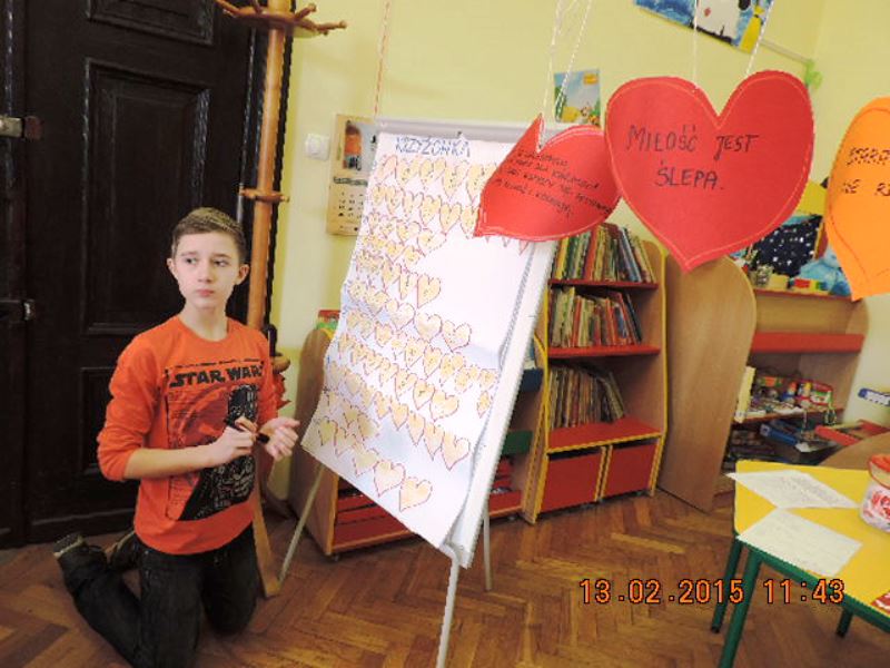 W bibliotece centralnej w Ołdrzychowicach Kłodzkich uczniowie z miejscowej szkoły podstawowej kibicowali trzem parom. Z zabawnym uczuciem prowadzono miłosne dialogi. Na kolanach rozwiązywano sercową krzyżówkę. Z wielkim zaangażowaniem robiono kartki walentynkowe. Stawiano zakochane pomniki. Rozmawiano o słynnych parach literackich i filmowych i o tym, jak to kiedyś będzie… Gościem spotkania był wolontariusz Ośrodka Kultury Jeison z Kolumbii.