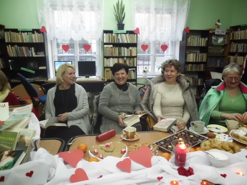 W bibliotece w Wojciechowicach było wszystkiego po troszku. Najmłodsi tworzyli serduszka z masy solnej, w której odbijali swoje małe rączki i dlatego nie zdążyli ich pomalować. Obiecują, że nadrobią . Starsi czytelnicy zajęli się kalamburami, potem przystąpili do gry „Życie” i „Kocham Cię Polsko”. Stałe bywalczynie zapewniły oprawę artystyczną spotkania, grając na gitarze w rytmie miłości i śpiewając o uczuciach do kogoś tam… Naj… parą zostali Dawid i Monika.