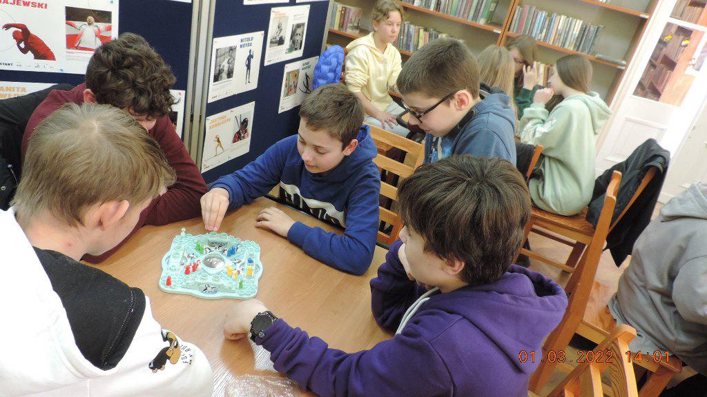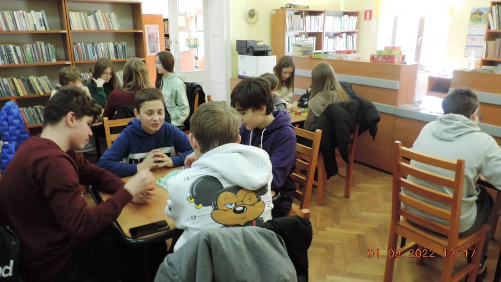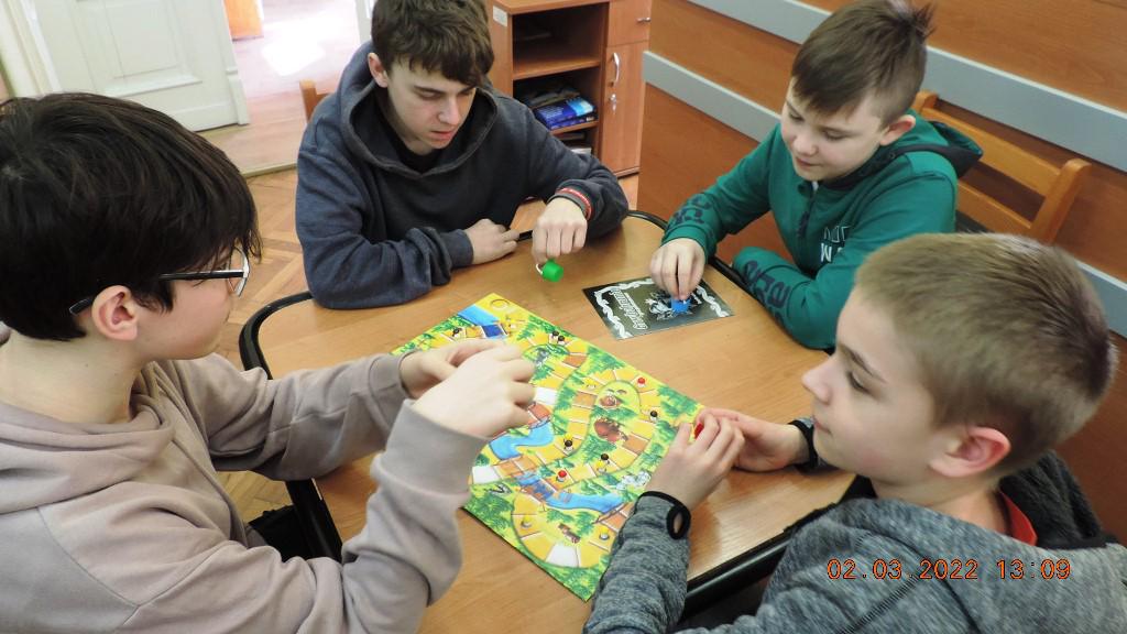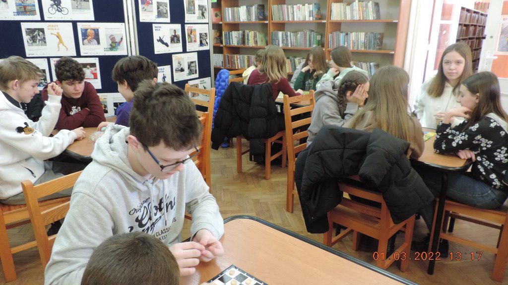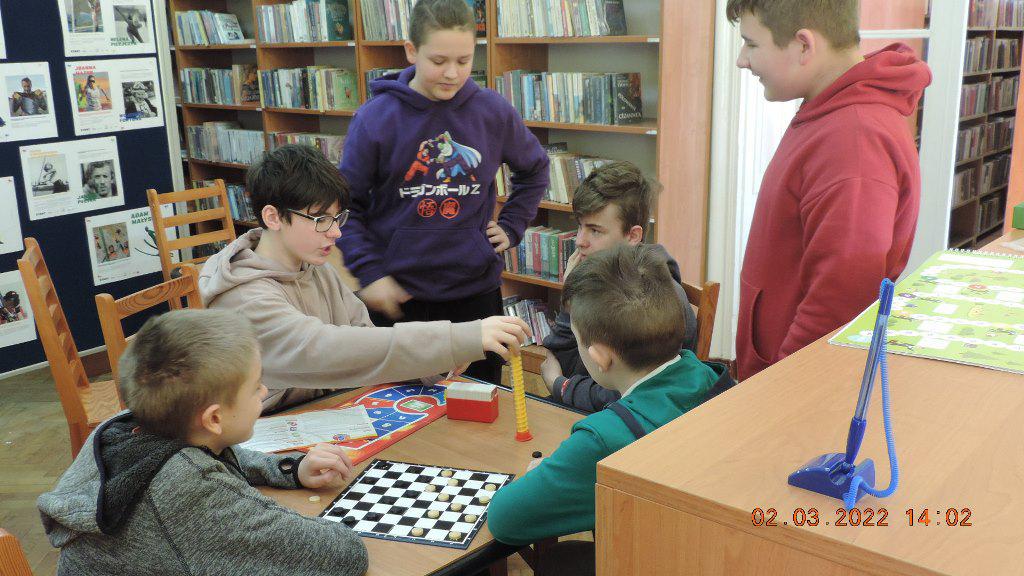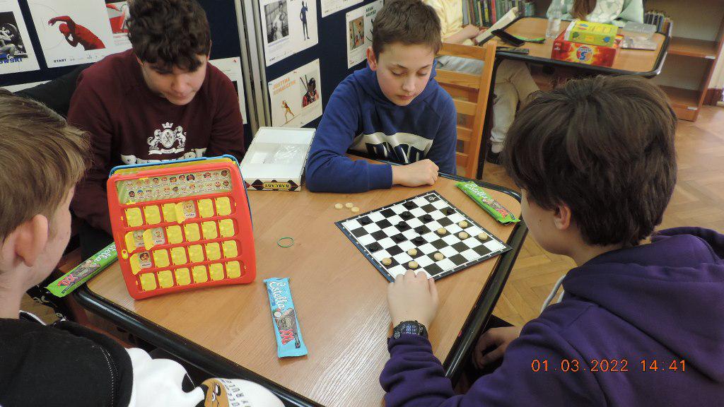 Uczestnikami marcowego, dwudniowego turnieju gier planszowych byli uczniowie klas siódmych miejscowej Szkoły Podstawowej wraz z nauczycielkami Roksaną Czesnołowicz i Iwoną Gąsior.