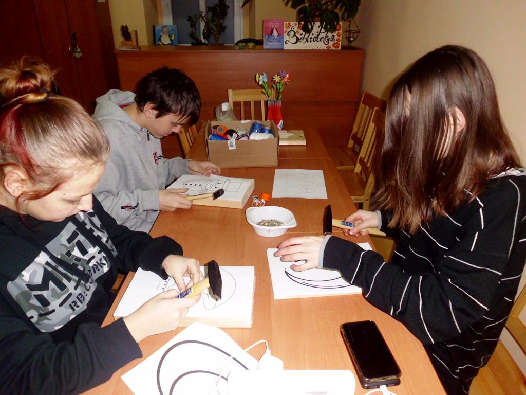 Tak więc, młodzi użytkownicy z wielkim sprytem i zacięciem przystąpili do wykonania autorskich kotów z brystolu, z tą różnicą, że bez butów…