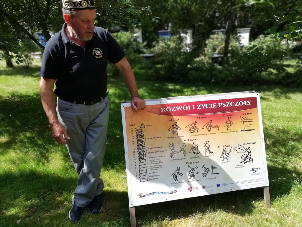 Pogoda dopisała. Dużo słońca, dużo pięknej roślinności. I jeszcze więcej pracowitych pszczół. O tym wszystkim z ogromną pasją i znajomością tematu opowiadał właściciel. Tutaj każdy kwiatek, każdy krzaczek, każde drzewo czemuś służy. Pszczoły znajdą tu wszystko, czego im potrzeba do produkcji miodu i nie tylko…
