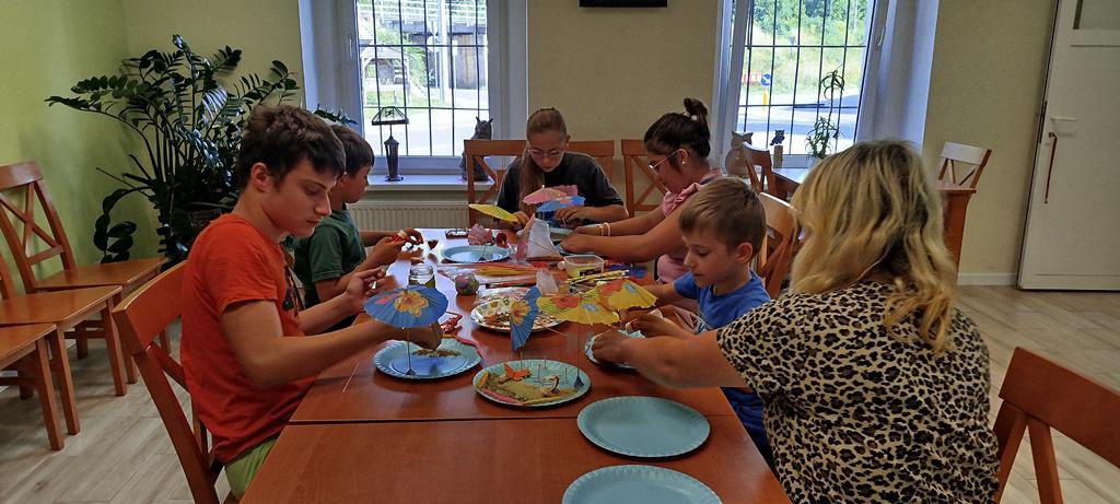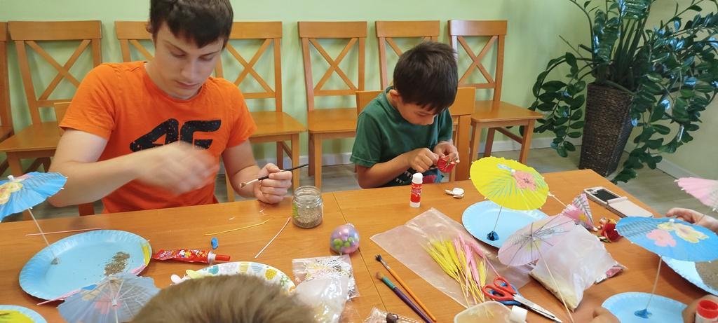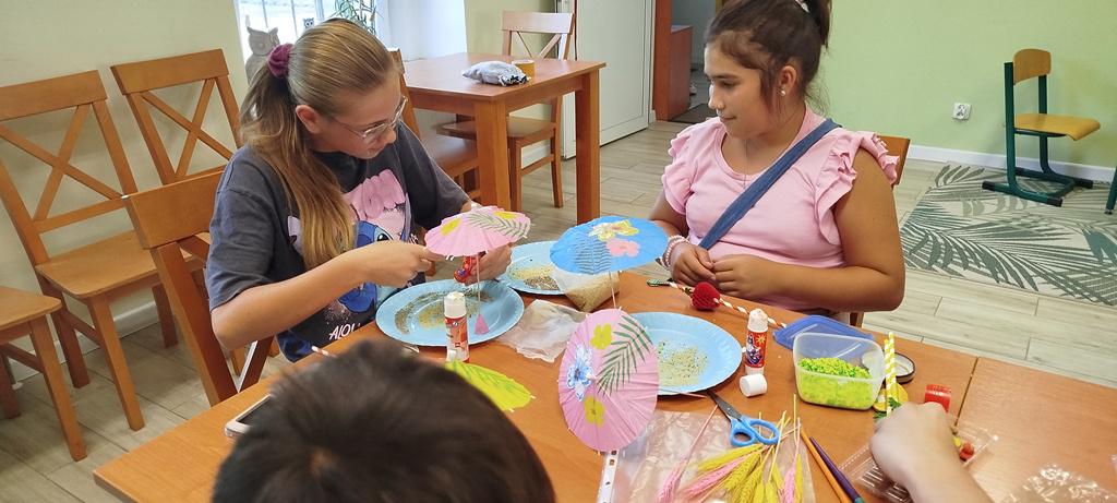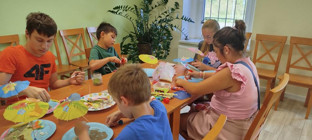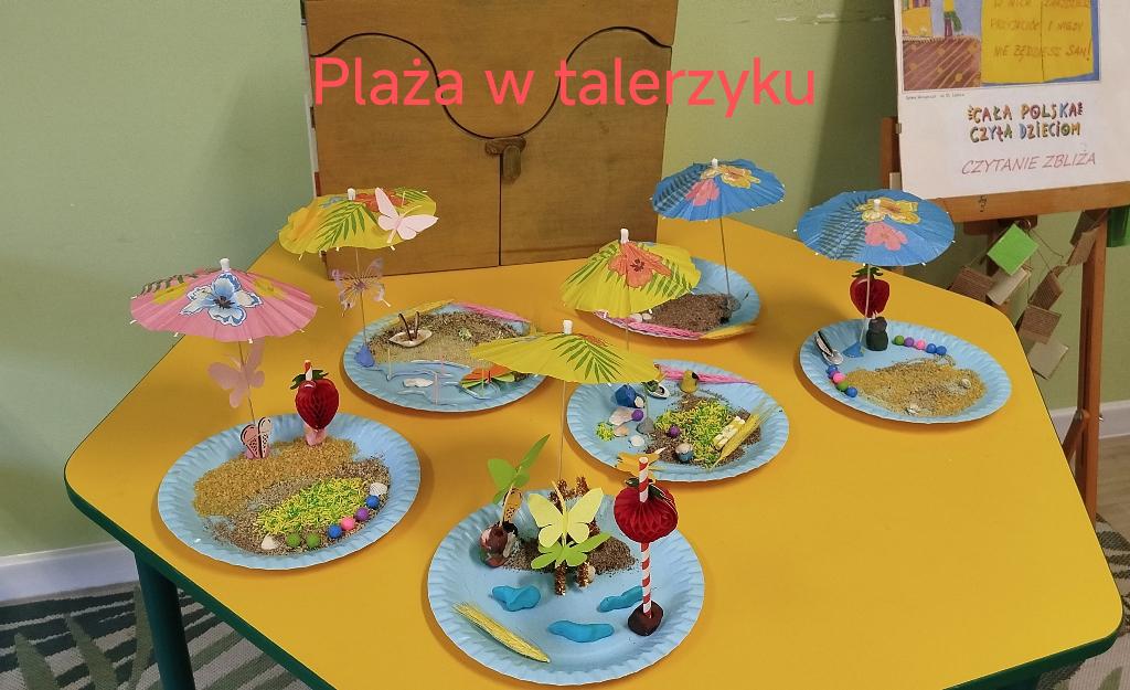 Pewnego słonecznego dnia postanowiliśmy wspólnie stworzyć... plażę! I to nie byle jaką – bo na papierowych talerzykach. Do stworzenia miniaturowych plaż wykorzystaliśmy piasek oraz muszelki przywiezione z wakacyjnych wyjazdów. Każdy uczestnik mógł dodać coś od siebie: kolorowe parasolki, plastelinowe postacie, kuleczki imitujące owoce czy dekoracje. Efekt? Zachwycające, bajkowe miejsca do plażowania – w sam raz na wakacyjne marzenia.