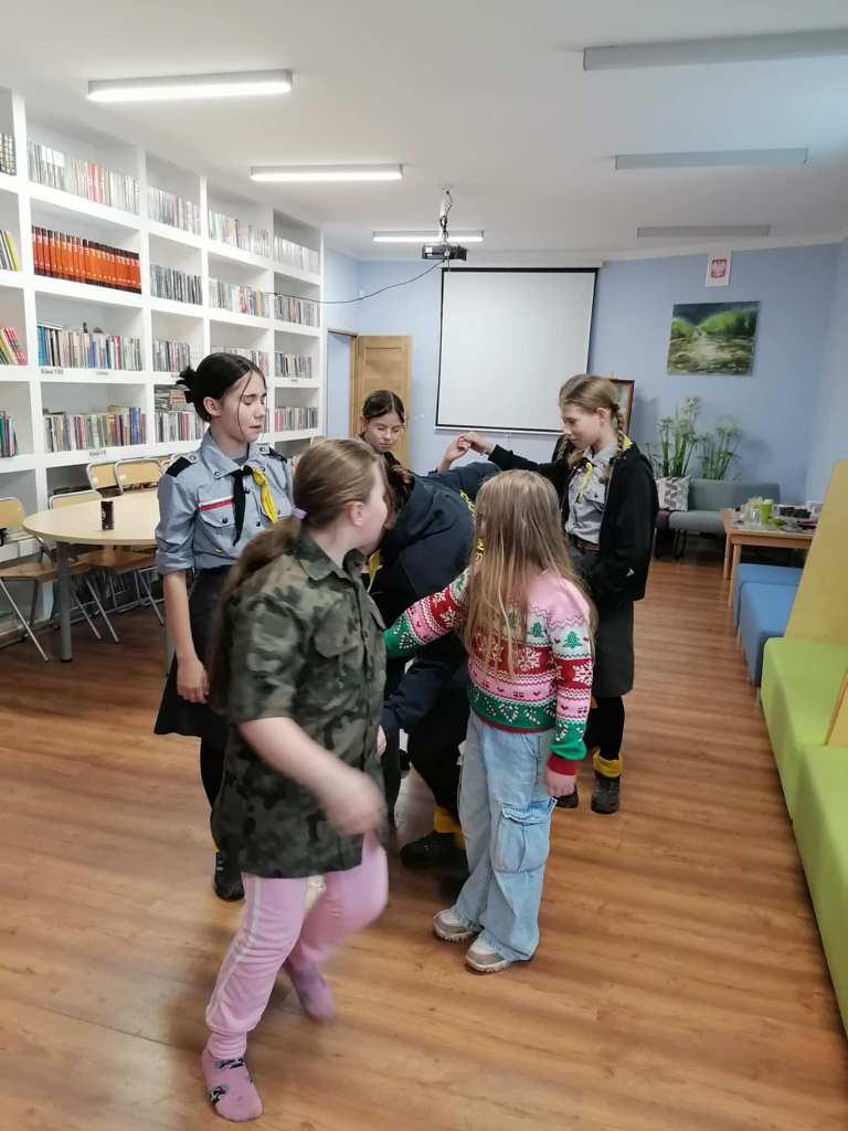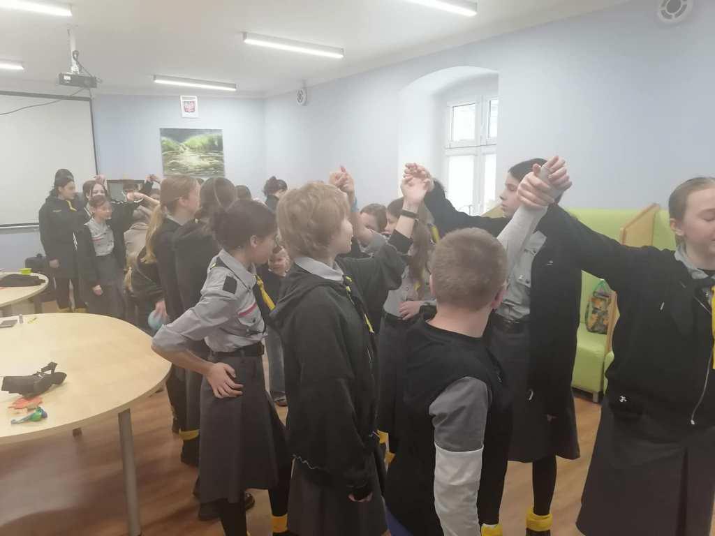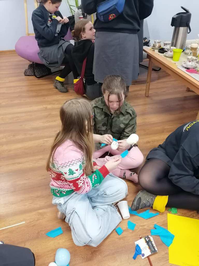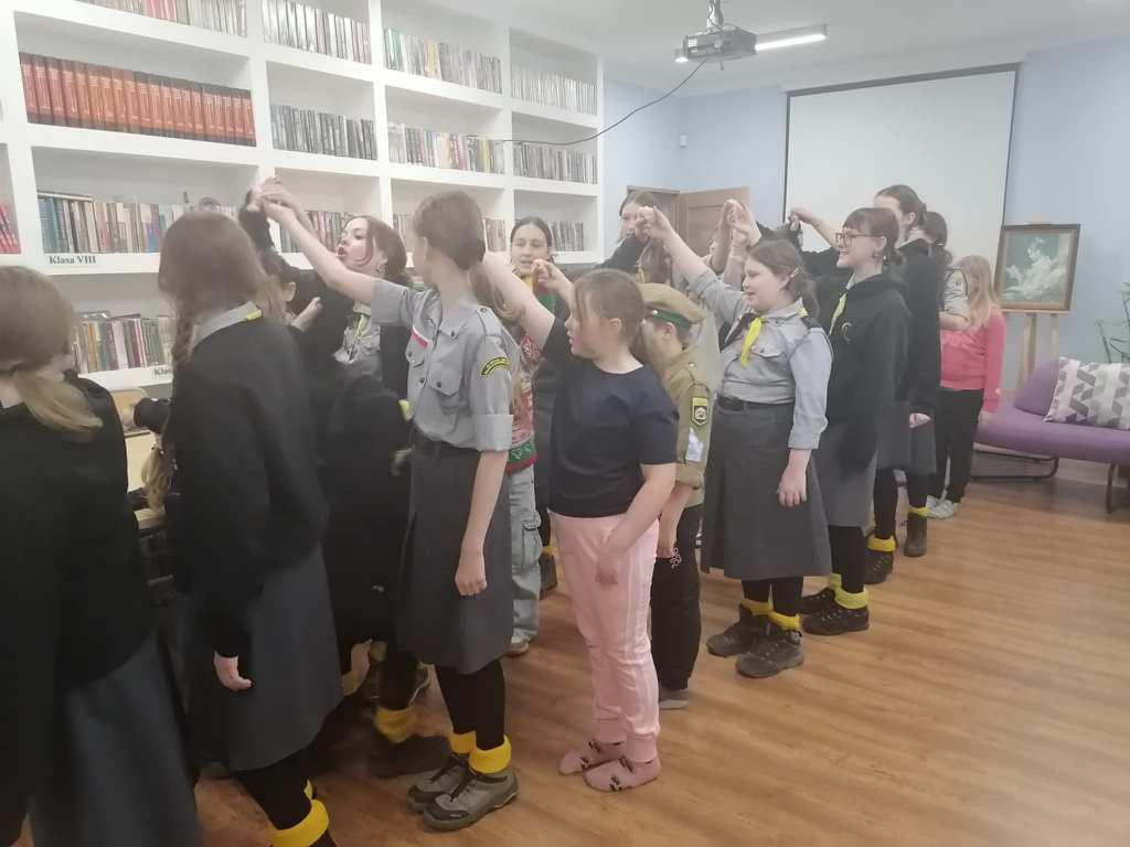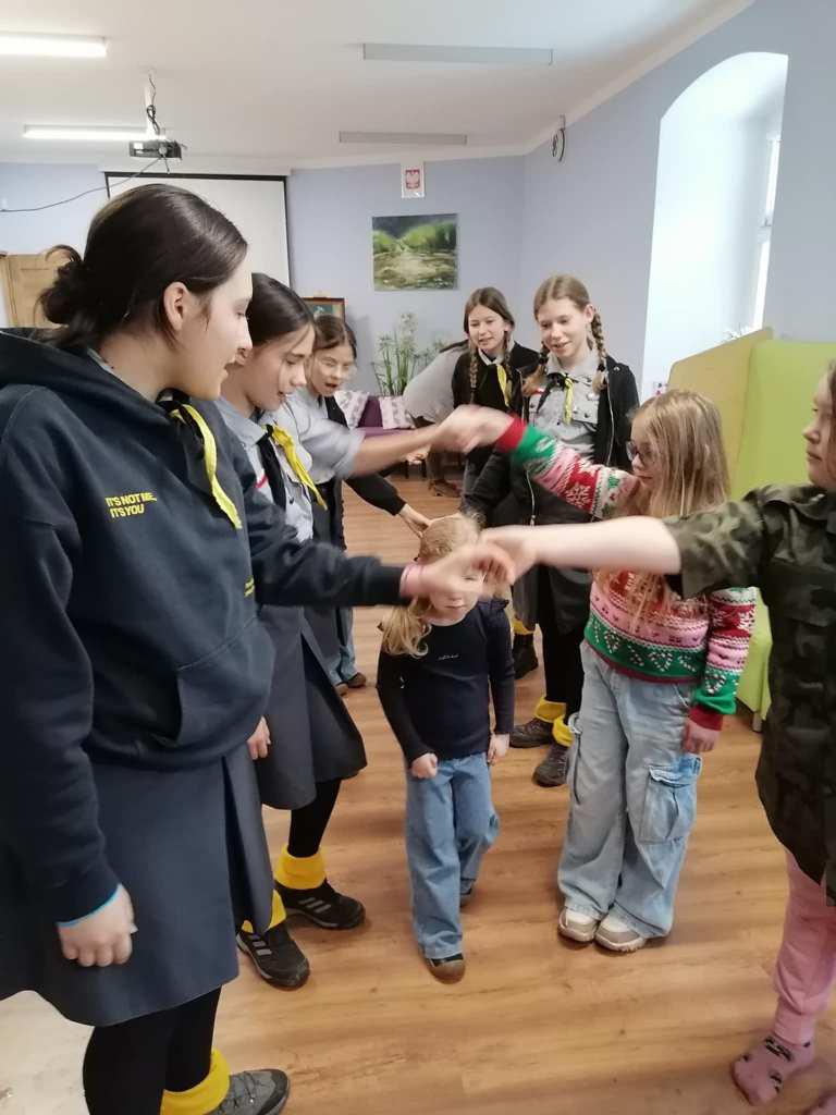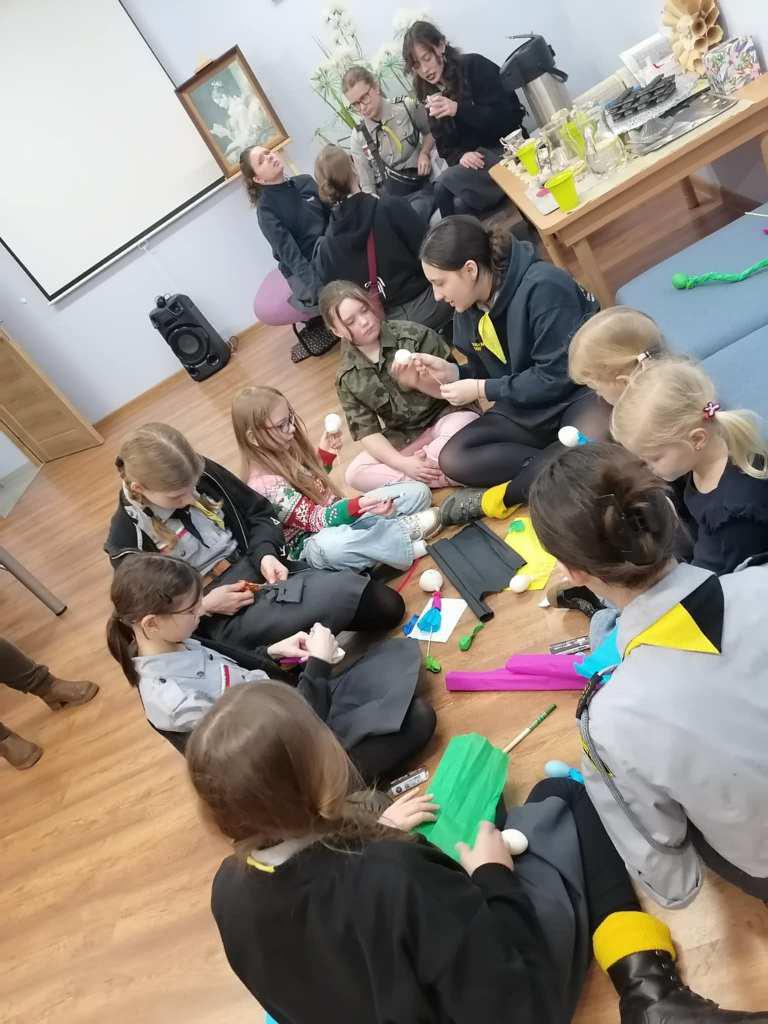 Podczas kreatywnych zajęć, 23 harcerki zintegrowały się z 12 dzieci z Wojborza. Na zapoznanie się były pląsy. Potem wszyscy pracowali się w 3 grupach. Tematem były legendy polskie.