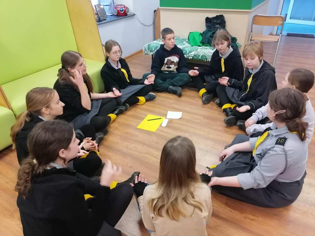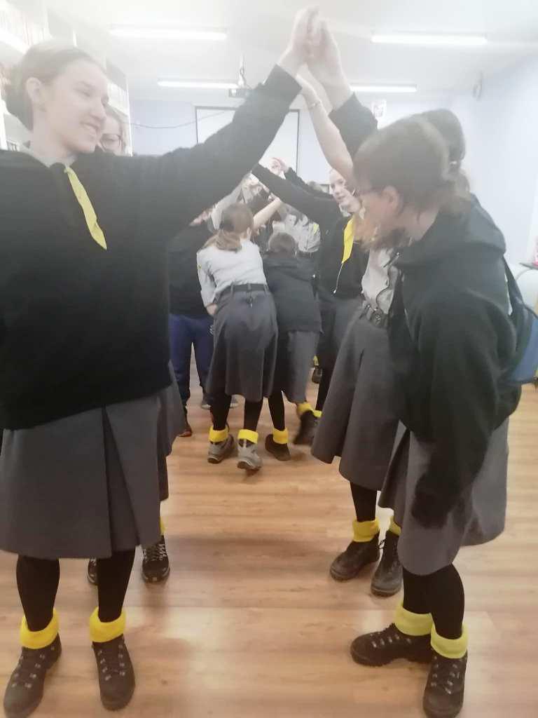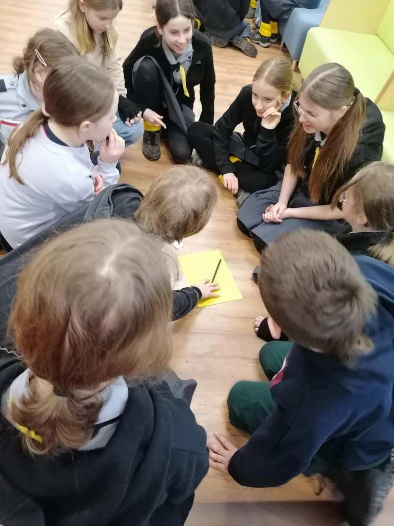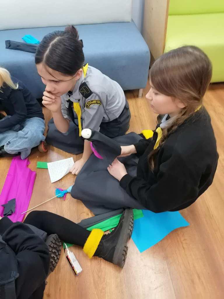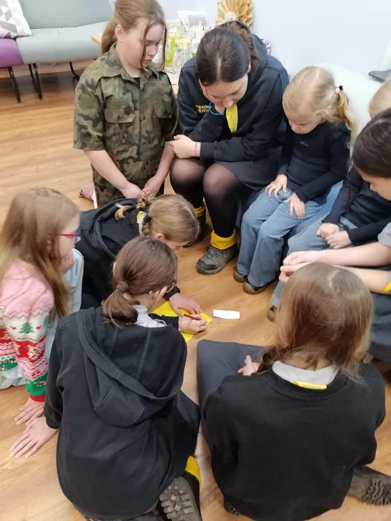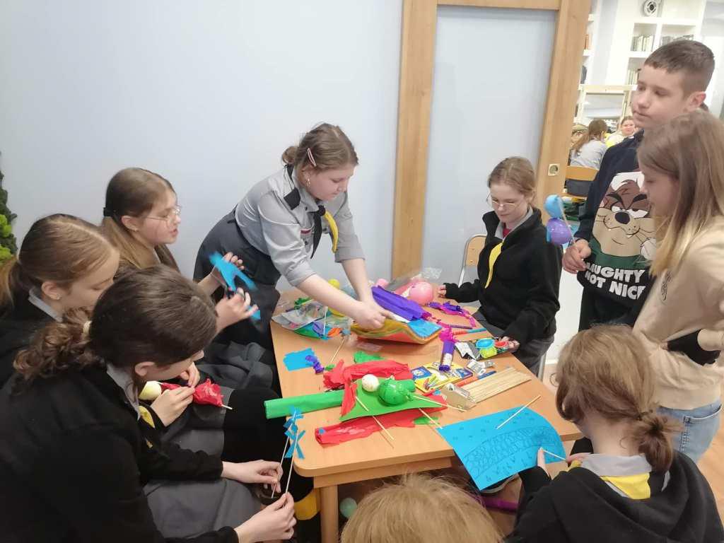 Podczas kreatywnych zajęć, 23 harcerki zintegrowały się z 12 dzieci z Wojborza. Na zapoznanie się były pląsy. Potem wszyscy pracowali się w 3 grupach. Tematem były legendy polskie.