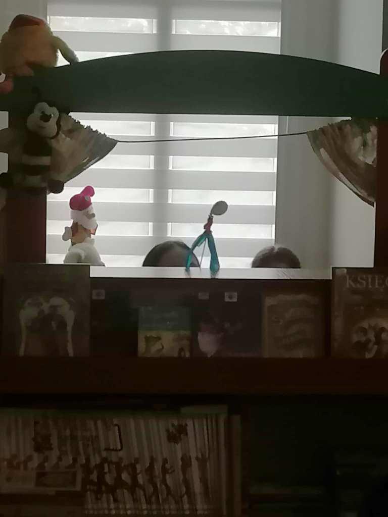 Następnie odbyły się prezentacje poszczególnych legend przy naszym teatrzyku. Między czasie były pląsy i zabawy. Każde dziecko otrzymało od gości prezent. Były to książeczki z naklejkami oraz kredki.