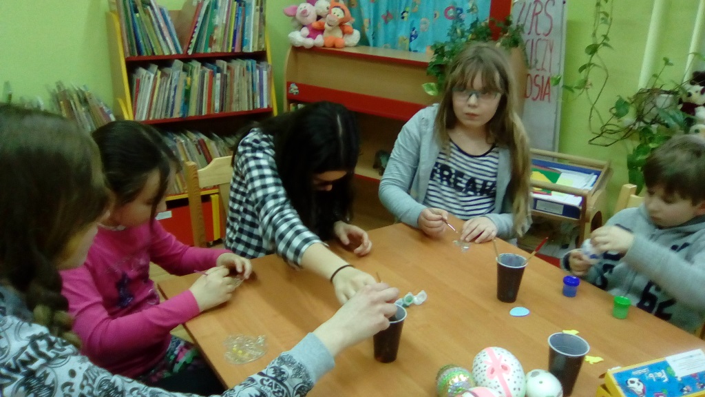 Coraz bliżej Święta Wielkanocne, dlatego też nic dziwnego, że na zajęciach w Filii Biblioteki Publicznej Gminy Kłodzko w Szalejowie Górnym, z wielkim zapałem dziewczęta i chłopcy przystąpili do wykonywania świątecznych ozdób. Przy okazji, pani bibliotekarka Monika opowiedziała o tym, że witraże można przygotowywać na różne sposoby: