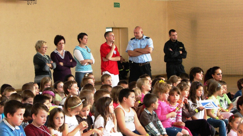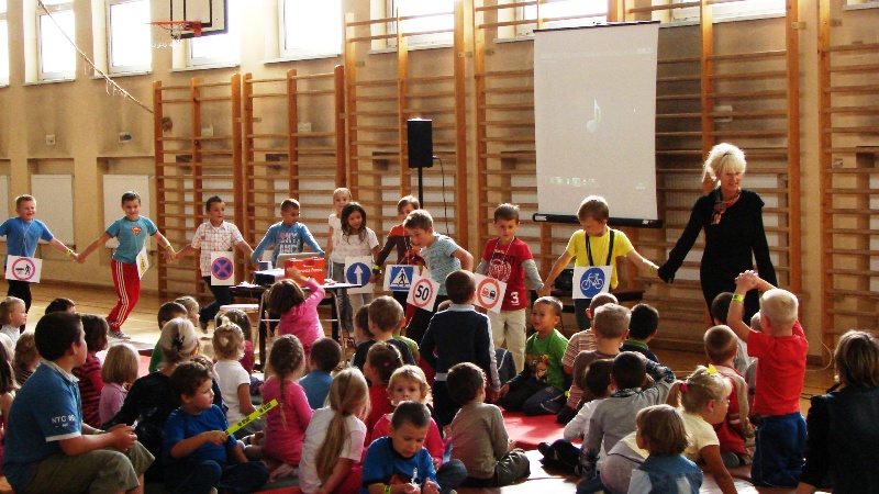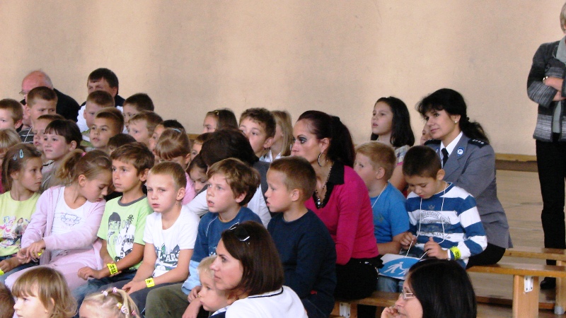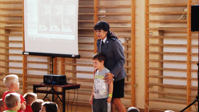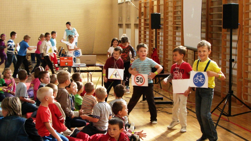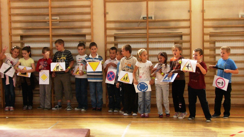 Tej prezentacji towarzyszą prawdziwe eksponaty, włącznie z bojowym wozem strażackim. Dzielnicowy Emil pomagał dzieciom zapamiętać poznane przepisy i zasady ruchu drogowego oraz gorąco namawiał do stosowania odblasków, podarowanych przez dyrektora Dolnośląskiego Urzędu Marszałkowskiego Bogusława Wijatyka. Pani nadkomisarz Wioletta zwracała uwagę na to, że dzieci są szczególnie narażone na problem wypadków z udziałem ciągników i maszyn rolniczych. Wypadki te powstają na skutek przewozu młodych pasażerów w nieprzystosowanej do tego kabinie ciągnika rolniczego lub w przyczepie. Trzeba uczyć dzieci zachowywać szczególną ostrożność, gdy ciągniki lub inna maszyna rolnicza jest w ruchu, nie tylko na drodze, ale także w polu czy na podwórku. Dziecko musi wiedzieć, że nie wolno mu obsługiwać żadnego urządzenia rolniczego. Przedszkolaki zderzyły się z wiedzą medyczną i poznały wszystkie niezbędne numery alarmowe.