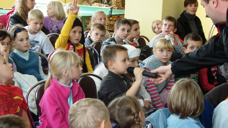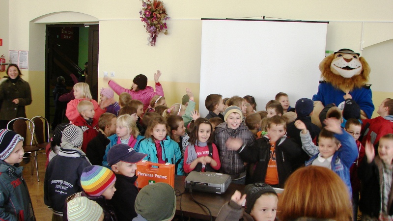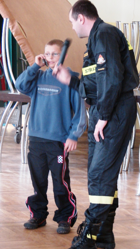 20 października eksperci z dziedziny bezpieczeństwa ruchu drogowego, p.poż. i pierwszej pomocy przyjechali do Domu Ludowego w Szalejowie Górnym. Czekała spora grupka najmłodszych uczniów z tutejszej szkoły integracyjnej. W trakcie spotkania dzielnicowy Emil Kowalski przypominał o zasadach panujących na drogach, placu zabaw, na kąpielisku i w lesie, obowiązkach rowerzystów i pieszych. Nieodzownym elementem tych zajęć jest wręczenie dzieciom odblaskowych oznakowań, które należy zakładać na ręce lub przywiesić do tornistrów, bądź umieścić na odzieży wierzchniej. Przekazywane dzieciom elementy odblaskowe zostały ufundowane przez Urząd Marszałkowski Województwa Dolnośląskiego. Jeżeli zauważysz pożar, natychmiast powiadom osobę dorosłą, o ile taka jest w domu – instruował komendant Ochotniczych Straży Pożarnych Marcin Olejnik. Jeżeli jest to niemożliwe, a masz w domu telefon dzwoń pod 998 podając dokładny adres zamieszkania, imię i nazwisko oraz numer telefonu, z którego dzwonisz. Jeżeli jest to do wykonania, to jak najszybciej wyjdź z domu i powiadom sąsiadów lub napotkaną dorosła osobę. Gdy pożar cię zaskoczy w pomieszczeniu, idź w stronę wyjścia schylony jak najbliżej podłogi.