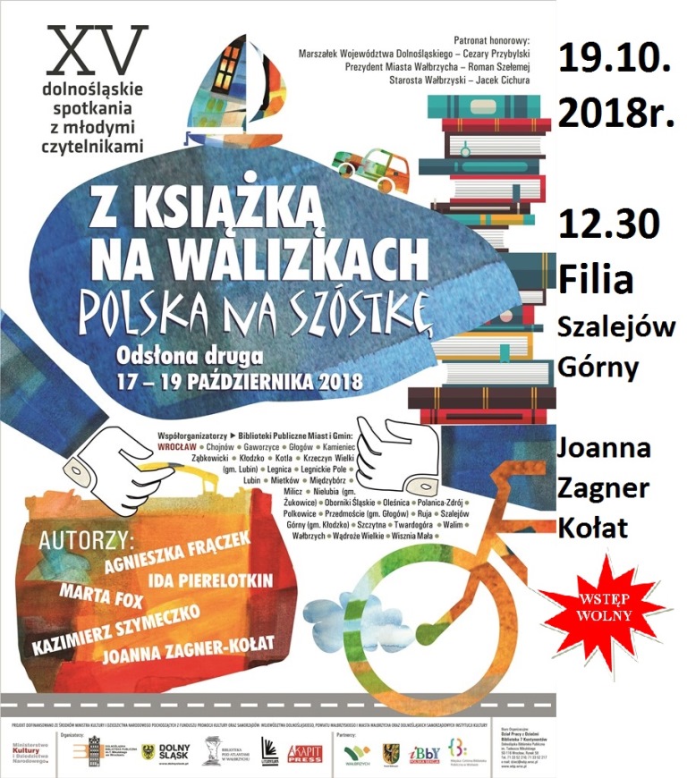 „Z książką na walizkach – Polska na szóstkę”- to Dolnośląskie Spotkania Pisarzy z Młodymi Czytelnikami, które już po raz piętnasty realizowała w naszym regionie Dolnośląska Biblioteka Publiczna we Wrocławiu. Projekt uzyskał dofinansowanie ze środków Ministra Kultury i Dziedzictwa Narodowego, pochodzących z Funduszu Promocji Kultury oraz samorządów województwa dolnośląskiego, powiatu wałbrzyskiego i miasta Wałbrzycha oraz dolnośląskich samorządowych instytucji kultury.