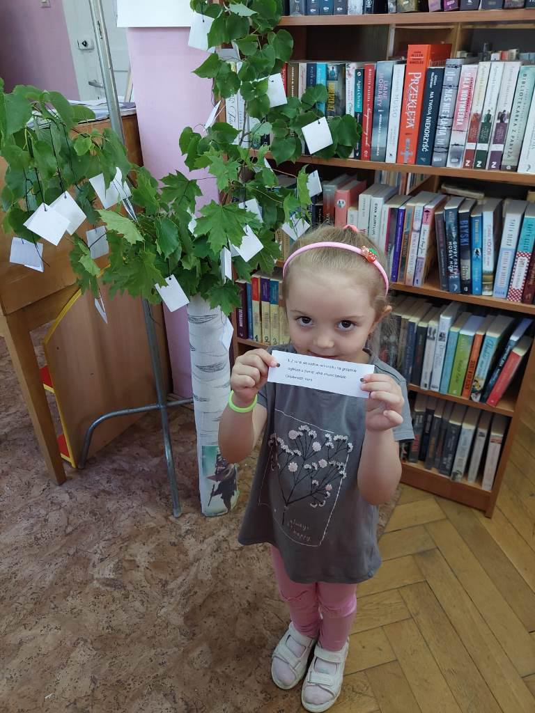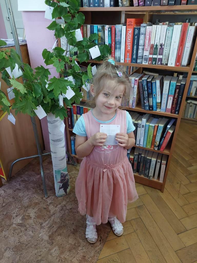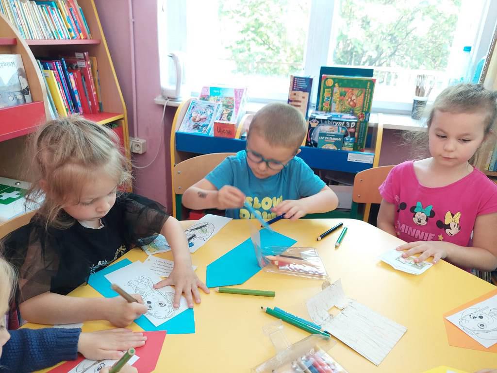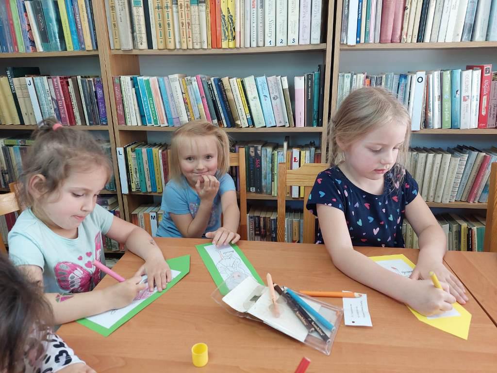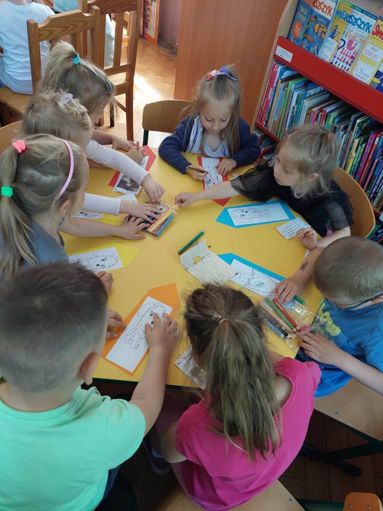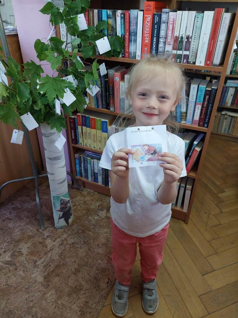 Na widoku pokazały się „Koziołek – Kręciołek”, „Kubuś - Łakomczuszek”, „Księżniczka Śniegu”, „Królewna z zapałkami”, czy też „Królowa na ziarnku grochu”. Mali goście bardzo rozbawieni tym zamieszaniem po uporządkowaniu tytułów, przystąpili do wykonania zakładek do książek z ulubionymi bajkowymi postaciami.