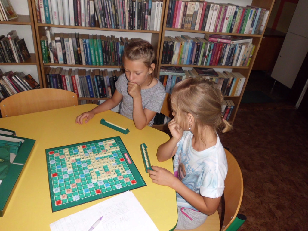 -Dzieci z wielkim uporem usiłują skończyć każdą rozgrywkę, która przynosi widoczne efekty i zadowolenie graczy – podkreśla pani Roma. Przy okazji zawodnicy uczą się zdrowej rywalizacji, rozwijają swoją kreatywność i logiczne myślenie. Od pewnego czasu stopień trudności jest podnoszony, trzeba tworzyć wyrazy związane z biblioteką i czytelnictwem… Zabawa jest świetna, zwłaszcza na niepogodę.