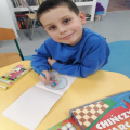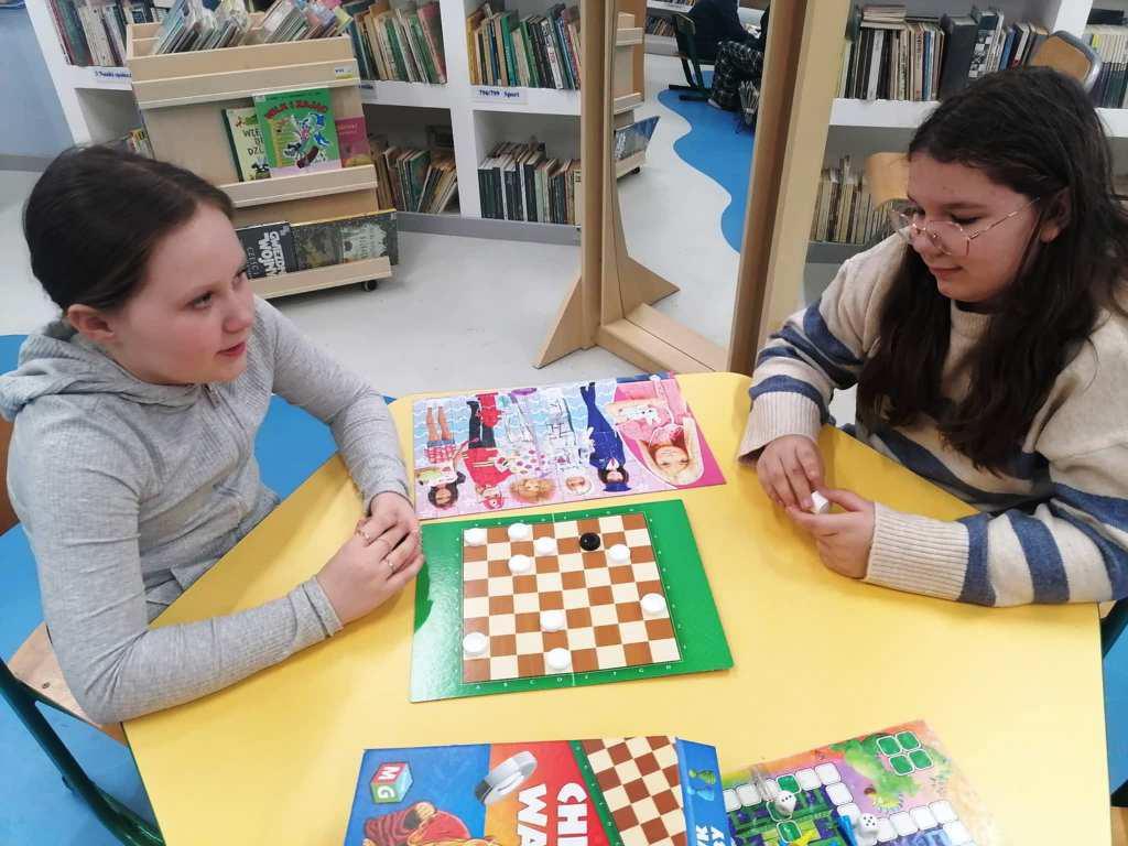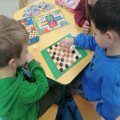 Największym powodzeniem cieszyły się rozgrywki w warcaby i chińczyka. Emocji nie brakowało, a rywalizacja była naprawdę wyrównana. W chińczyka zwyciężył Kacper, natomiast w warcabach najlepszy okazał się Michał. Maja i Daria wybrały spokojniejszą formę zabawy i z zaangażowaniem układały puzzle z Barbie, dopasowując kolejne elementy obrazka.