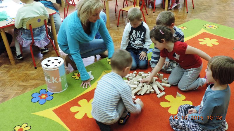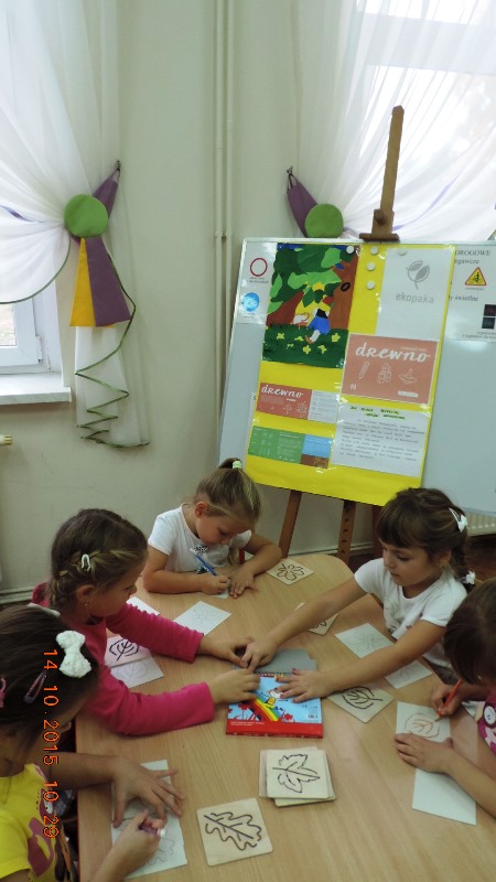 Zajęcia z drewnem w ramach projektu „EkoPaka – zamknięty obieg surowców” w grupie 17 osobowej poprowadziła stażystka pani Roma Sz. z biblioteki centralnej. Na podłodze, w każdym kącie i na schodach też można było zauważyć aktywność dzieci. W czasie zajęć najmłodsi poznali, co to jest drewno, co się z niego produkuje oraz w jaki sposób możne je powtórnie wykorzystać. Rekwizyty, które biblioteka otrzymała w ramach projektu wywołały u nich ogromne zainteresowane. Najbardziej spodobały im się drewniane szablony z motywami liści, z których wykonały karty do gry „memory”, a także megakolorowanka przedstawiająca las. Na zakończenie zajęć dzieci bawiły się w malarzy, a na pamiątkę wspólnie spędzonego czasu pomalowały serca wykonane z płyty MDF. Wkrótce odbędą się kolejne zajęcia tematyczne projektu „EkoPaka”, zachęcamy więc do śledzenia relacji z drewnianego warsztatu.