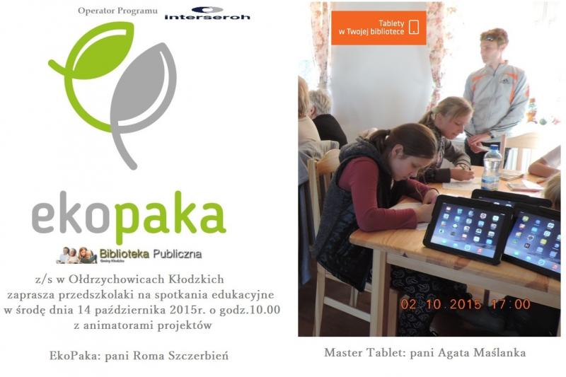 Biblioteka Publiczna Gminy Kłodzko pojawia się z ofertą wszędzie tam, gdzie jesteśmy potrzebni. 14 października 2015 roku w Ołdrzychowicach Kłodzkich ulewny deszcz nie pozwolił przedszkolakom dotrzeć do naszej biblioteki. Więc nasi bibliotekarze zapakowali EkoPakę oraz nowoczesne tablety i pojechali do miejscowego przedszkola. Dziecięce serduszka były uradowane.