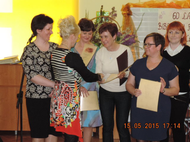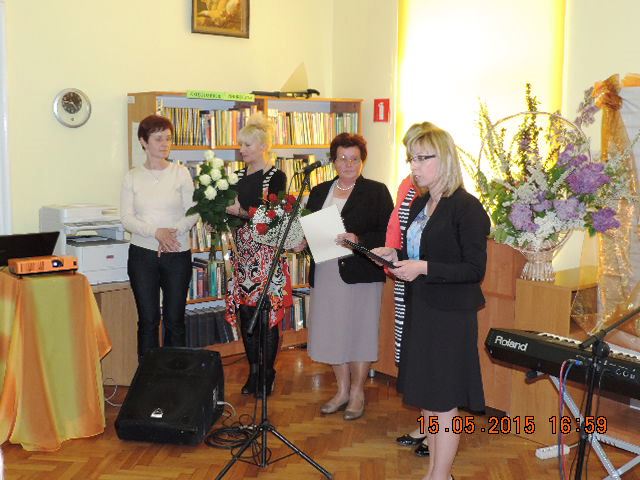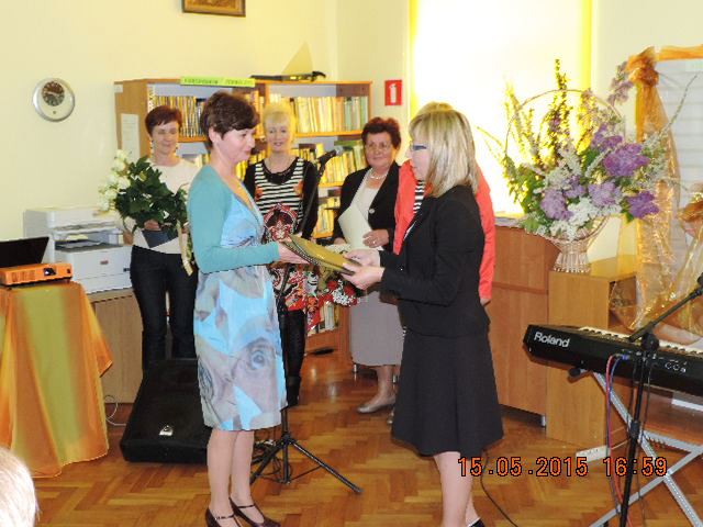 Z okazji Święta Bibliotekarza, dyrektor Biblioteki pani Mariola Huzar wręczyła bibliotekarkom i pracownikom okolicznościowe listy oraz nagrody finansowe. Dziękowała za krzewienie w środowisku lokalnym miłości do literatury. Życzyła, by dalsze życie zawodowe i prywatne było źródłem satysfakcji i pasmem samych sukcesów. By, na co dzień nie brakowało dobrego zdrowia, wytrwałości oraz wszelkiej pomyślności, a codzienna praca przynosiła nowych miłośników i pasjonatów czytania.