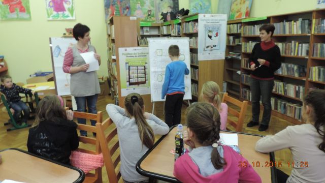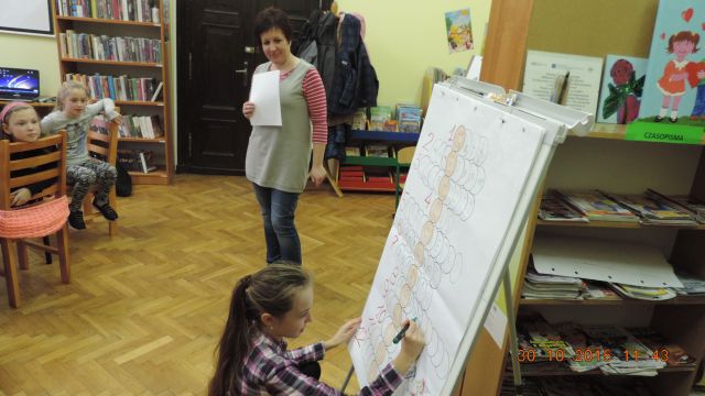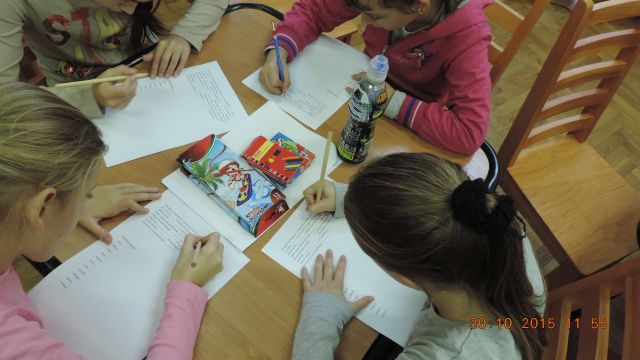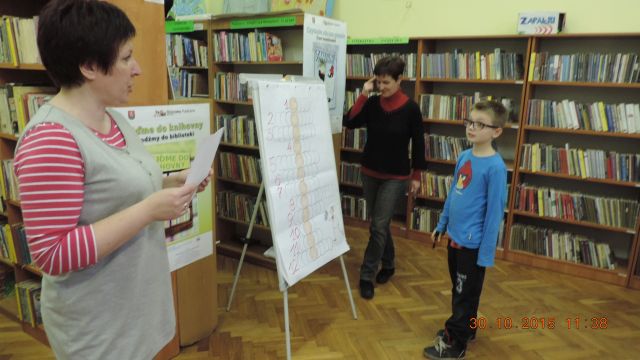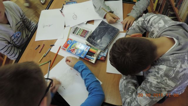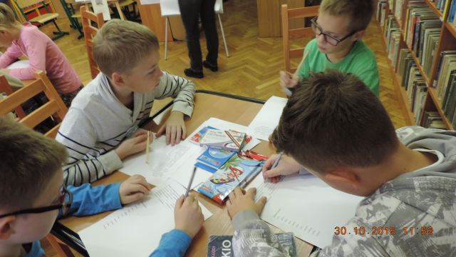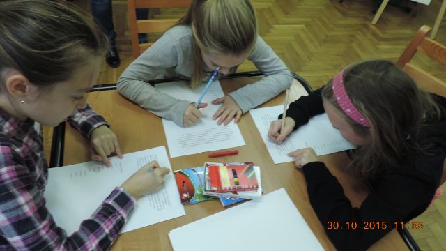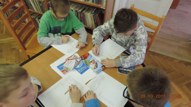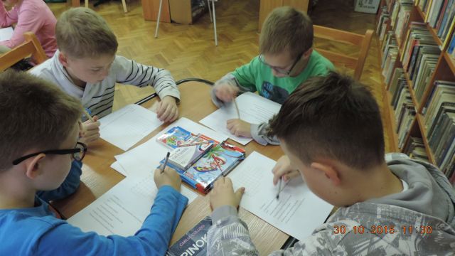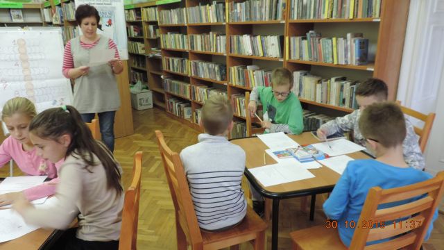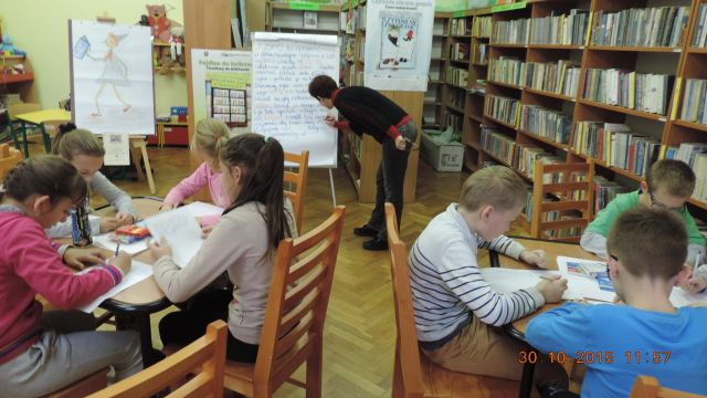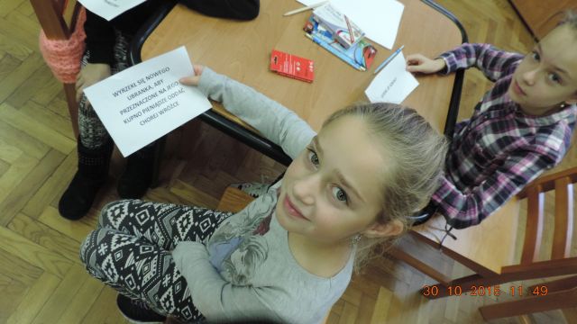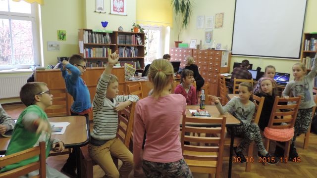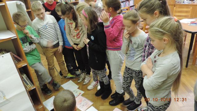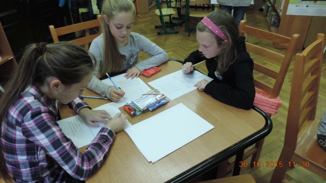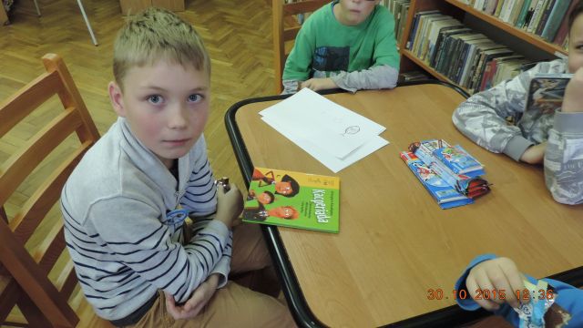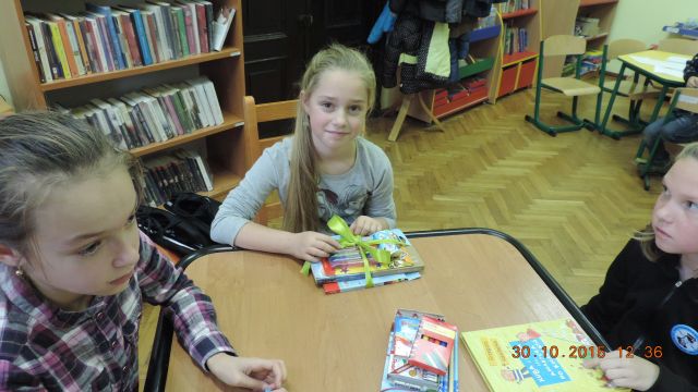 Panie bibliotekarki Małgorzata i Alina nagrodziły cztery osoby. Pierwsze miejsce zajęła uczennica Daria Fuchs, a w nagrodę otrzymała zestaw przyborów plastycznych. Wyróżnienia książkowe otrzymali Karolina Margasińska, Szymon Wiśniewski i Martyna Wrzeszcz. Pozostali uczestnicy zajadali się na słodko.