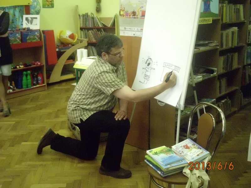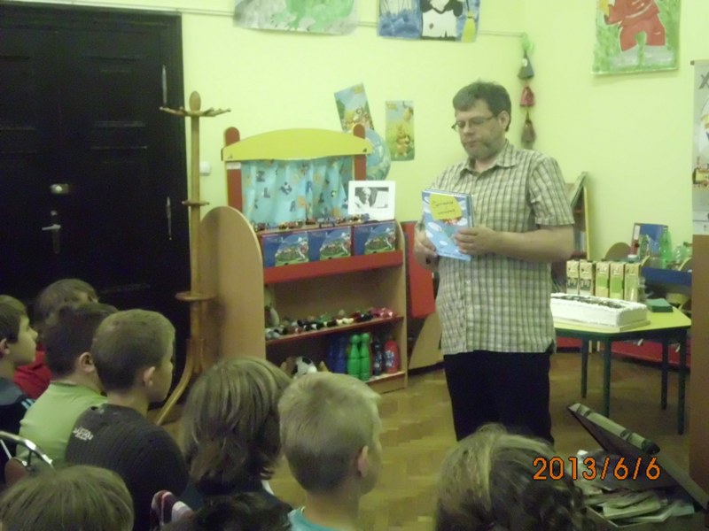 Gdy już pan PAWEŁ WAKUŁA dostał się do głosu, najpierw opowiedział o swojej twórczości ilustratorskiej i pisarskiej, ze szczególnym uwzględnieniem takich tytułów jak „Kajtek i Yetik”, czy też „Kajtek i Yetik podnoszą żagle”. W tym miejscu pojawiło się trochę przekornych komentarzy u młodych czytelników-słuchaczy, których pan Paweł rozbroił „Opowiadaniami z uśmiechem”. Tak więc, Kacper! – prawdziwa przygoda czai się za rogiem, a niekiedy może nawet spaść z nieba…