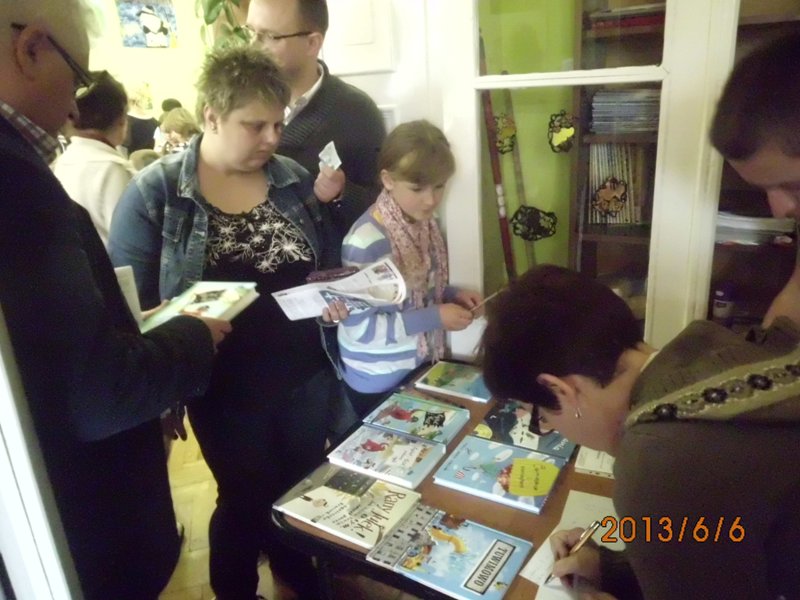 Zanim jednak gość specjalny mógł przystąpić do pracy z czytelnikami, pani Lilianna Figurska – lokalna twórczyni słowa pisanego – szarpnęła wagony i przedstawiła swoją wersję „Lokomotywy” i zrobiło się, jak na stacji …