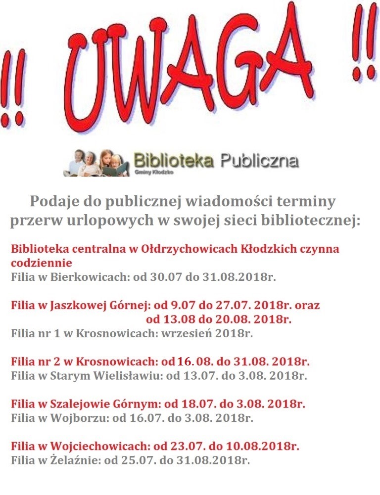 Plan działalności Biblioteki Publicznej Gminy Kłodzko na miesiąc sierpień 2018