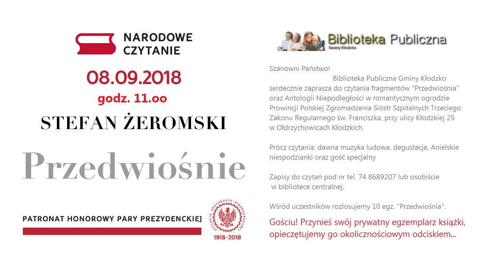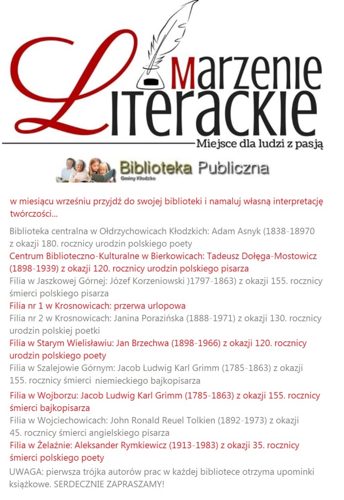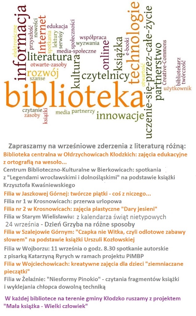 Plan działalności Biblioteki Publicznej Gminy Kłodzko na miesiąc wrzesień 2018