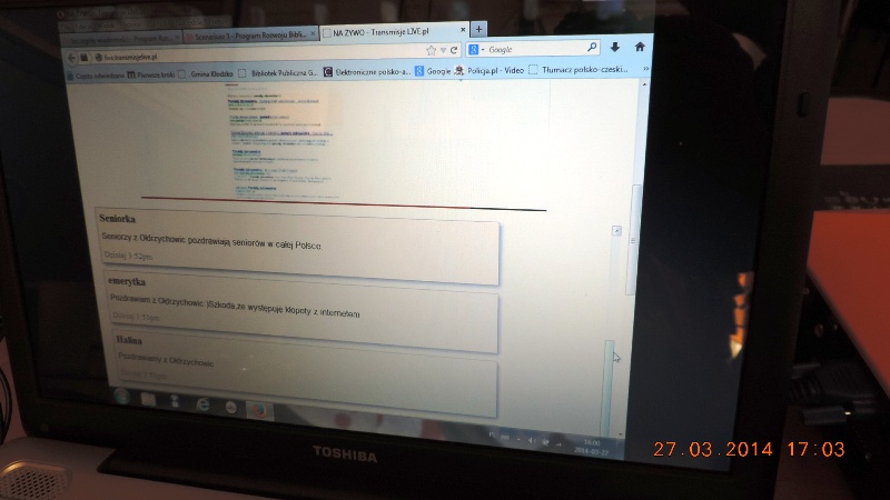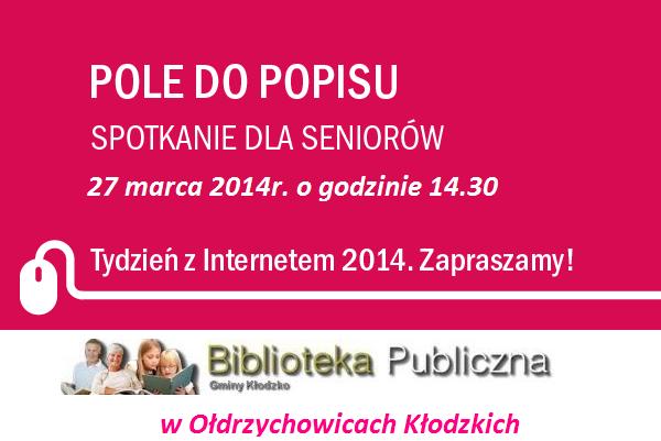 w międzynarodowej akcji „Tydzień z Internetem 2014”. Celem akcji było zachęcenie jak największej liczby osób do korzystania z Internetu w Bibliotece. W czwartek 27 marca w bibliotece centralnej swoje pole do popisu mieli seniorzy z Ołdrzychowic Kłodzkich i Starego Wielisławia.