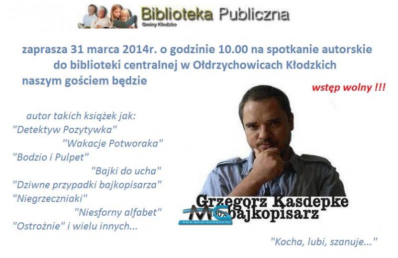 Bibliotekę Publiczną Gminy Kłodzko 31 marca odwiedził długo oczekiwany przez dzieci pisarz Grzegorz Kasdepke, który przyjechał do Ołdrzychowic Kłodzkich na spotkanie z uczniami miejscowej Szkoły Podstawowej oraz dziećmi z Czech. Znakomitego bajkopisarza powitała pani Mariola Huzar, dyrektor Biblioteki. Mówiła…
