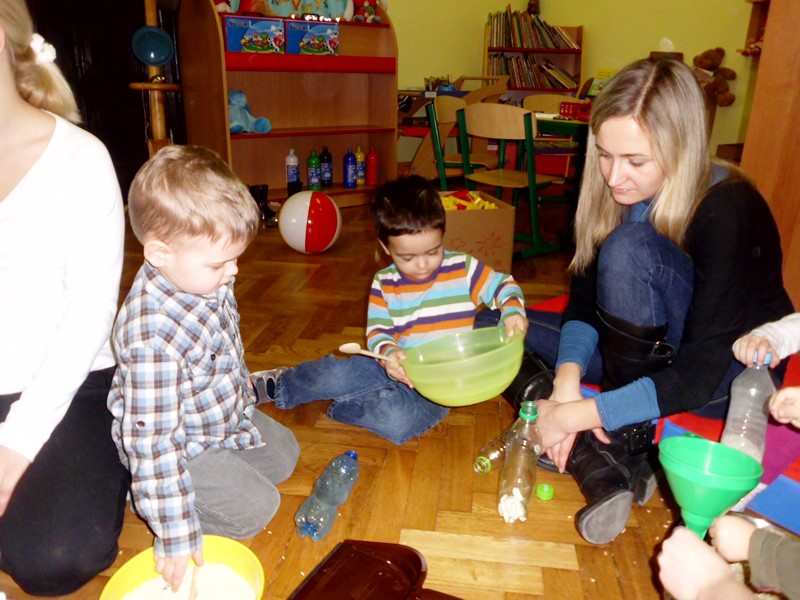Takie spotkanie jest motorem , siłą napędzającą i wywołuje w nas- animatorach pozytywną energię i ochotę do dalszej pracy. Animatorki zajęć Małgorzata Ostrowska i Alina Sydorko mówią: "Widzimy sens swojej pracy. Dzieci zyskują bardzo dużo. Poznają swoich rówieśników, uczą się z nimi bawić, współpracować, rozwiązywać problemy. Pomysł zabawy produktami spożywczymi był bardzo trafiony. Dzieci uwielbiają zabawę „prawdziwymi” rzeczami dorosłych. Piękną błyszczącą elektroniczną zabawkę chętnie zamieniają na drewnianą łyżkę czy papierową torebkę z ryżem. Taka zabawa pozwala im na nowe doznania manualne, pobudza wyobraźnię, rozwój zmysłu dotyku. Uczy też skupienia i koncentracji. Poznają też i rozróżniają kształty, ciężar i strukturę poszczególnych materiałów. Dzieci poznają nowe słowa, nazwy. Rodzice natomiast są zachwyceni swoimi pociechami, poznają nowy pomysł na zabawę w domu".