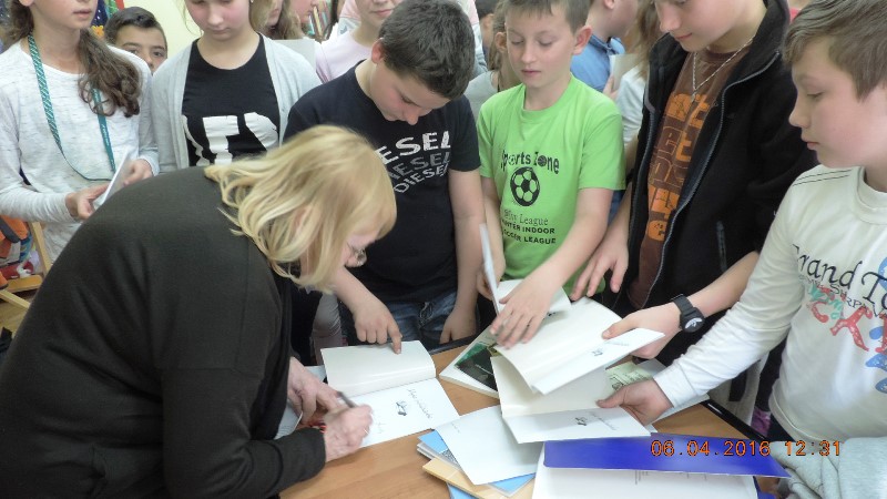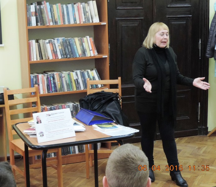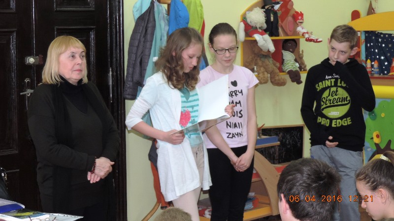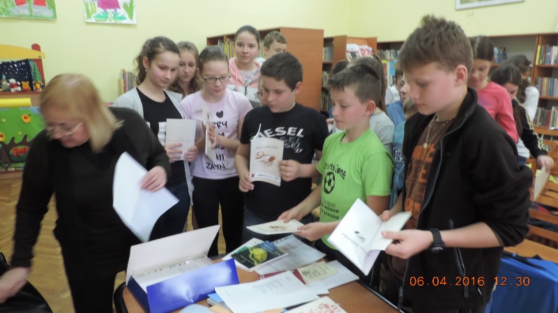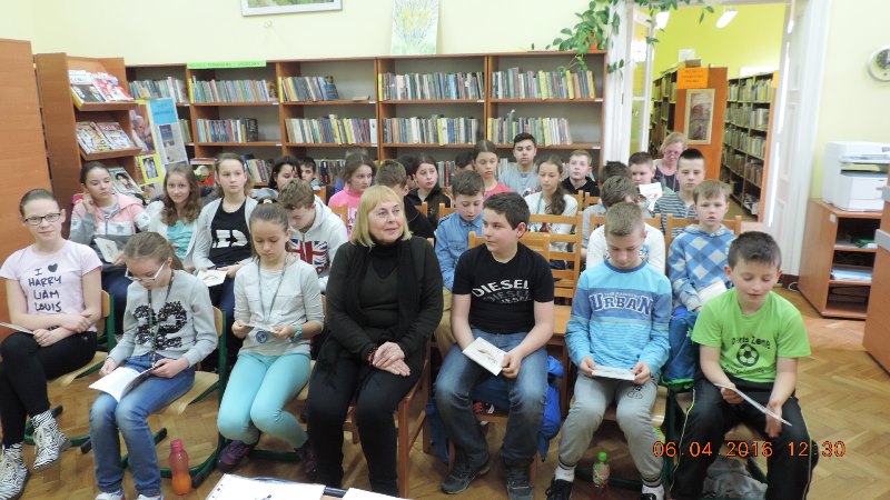W grupie uczniowskiej poetka nawiązała interaktywny kontakt literacki z Mateuszem i Michałem. Zuzanna, Alicja i Kacper zaprezentowali swoje bajki wierszem, opublikowane w „Polsko-Czeskich zmyślonych bajecznych historiach”, wydanych przez Bibliotekę Publiczną Gminy Kłodzko w roku 2012. Po takiej prezentacji, pisarka zachęcała młodych twórców słowa pisanego do wzięcia udziału w Turnieju Poetyckim „O Koronę Wierzbową”, w ramach Lednickiej Wiosny Poetyckiej.