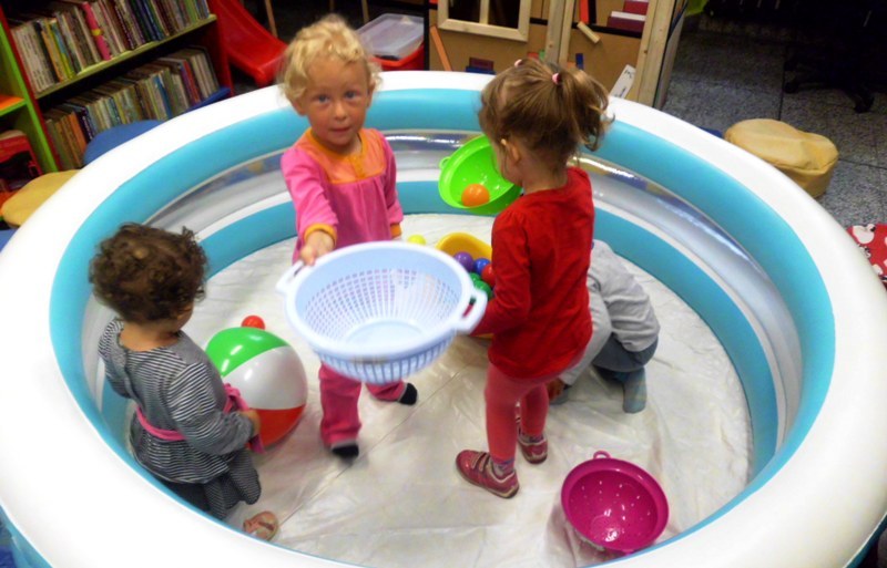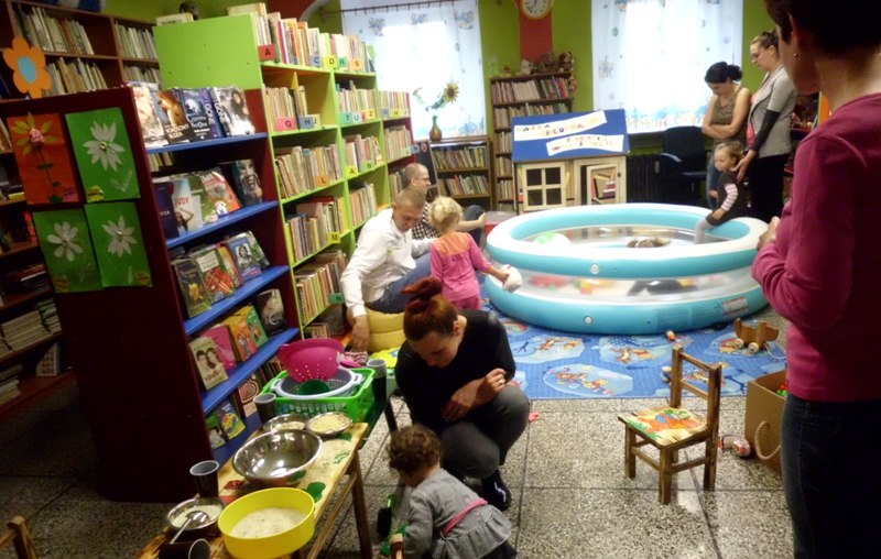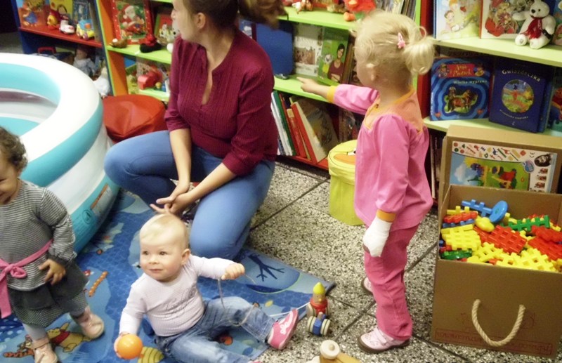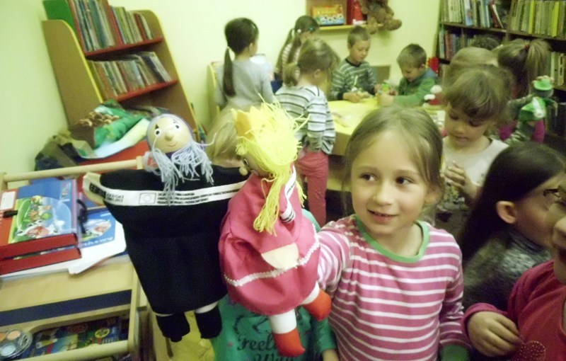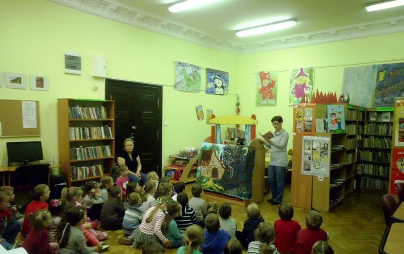 Nie tylko my się szkoliliśmy, bo panie bibliotekarki Małgorzata Ostrowska i Alina Sydorko pojechały z lekcją pokazową do Biblioteki Publicznej w Bystrzycy Kłodzkiej. Przy udziale dzieci w wieku do lat trzech i ich rodziców zaprezentowały jeden moduł grupy zabawowej, zainicjowanej w bibliotece centralnej w Ołdrzychowicach Kłodzkich w ramach projektu realizowanego przez Fundację im. Jana Amosa Komeńskiego „Biblioteczne zajęcia dla dzieci i rodziców – edycja druga”, zgodnie z założeniami Programu Rozwoju Bibliotek.