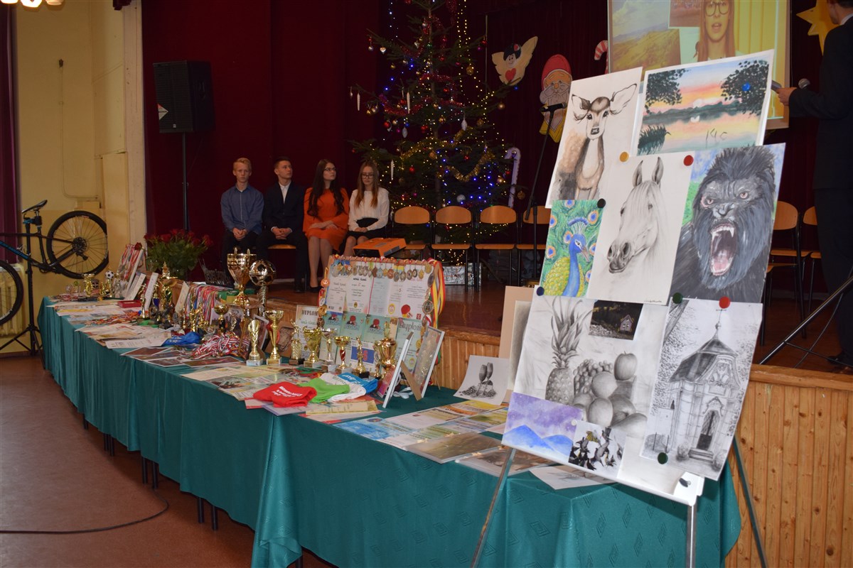 Na zakończenie wydarzenia, dyrektor Biblioteki Mariola Huzar ogłosiła wyniki konkursu literacko-plastycznego „Świąteczne życzenia choinką ubrane”, do którego wpłynęło ogółem 89 prac: