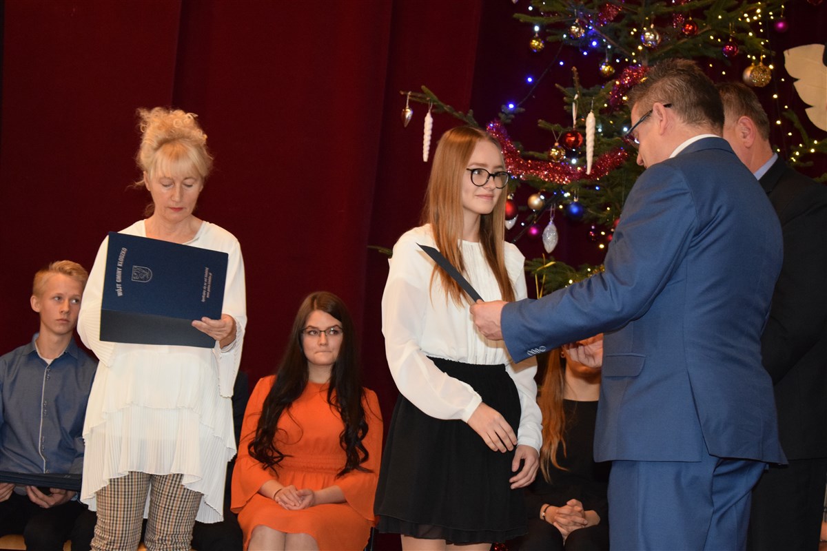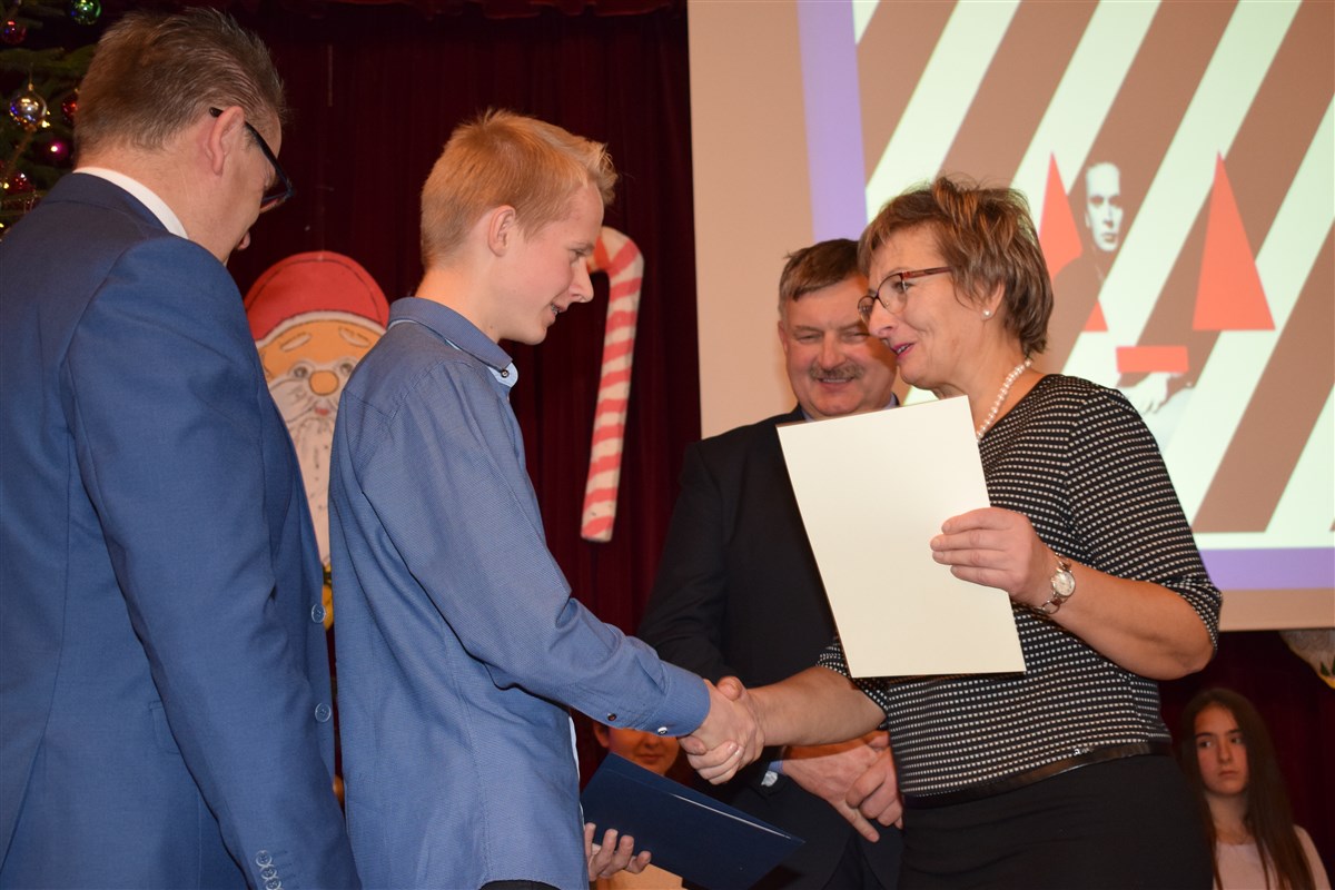 Bartosz Polak z Żelazna, lat 15, uczeń klasy pierwszej Liceum Ogólnokształcącego im. Bolesława Chrobrego w Kłodzku, za wyniki w nauce i osiągnięcia sportowe w biegach przełajowych