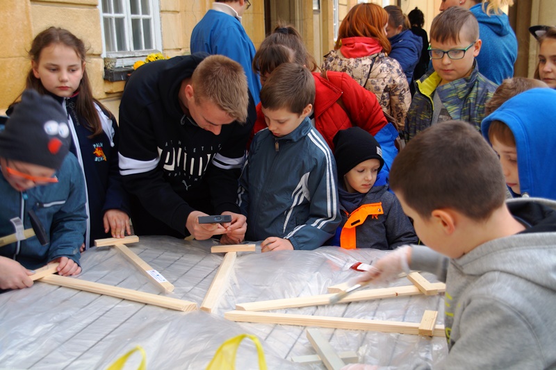 Na zewnątrz obiektu królowały warsztaty drewnianych mieczy, gdzie 70 dzieci dało upust swoim chęciom do majsterkowania, wizualizacji miecza oraz uwolniły swoje waleczne serca...