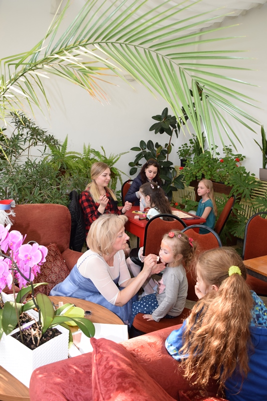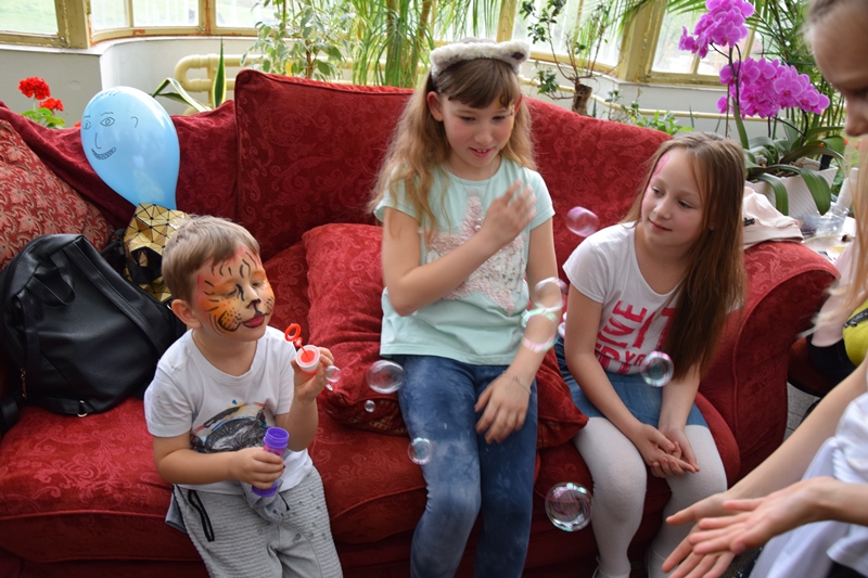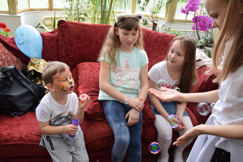 W oranżerii dominowały warsztaty zabawowe o charakterze edukacyjnym: malowanie twarzy, bańkowe inspiracje, magiczne piłeczki sensoryczne oraz masa porcelanowa.