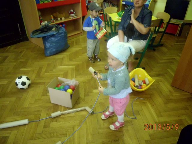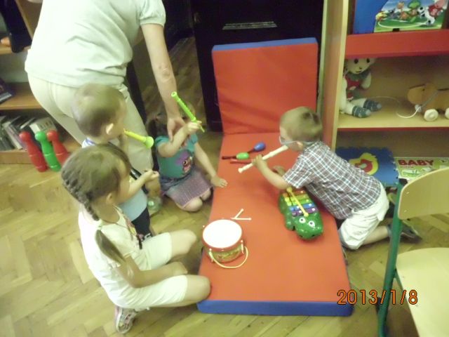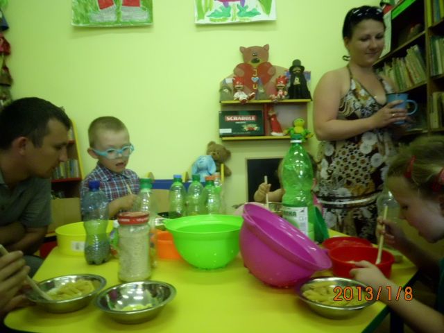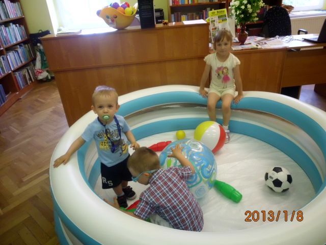 Takich spotkań mamy już za sobą dwanaście i dziś można pokusić się na małe podsumowania. Na każdym kolejnym spotkaniu dzieci czuły się coraz bardziej swobodnie. Miały swoje ulubione miejsca i zabawy w bibliotece. Dzieci w tym wieku są wielkimi indywidualistami. Były chwile, że nie można było przeprowadzić żadnej zabawy grupowej, gdyż maluchy były zaabsorbowane swoją ulubioną zabawą – według własnych zainteresowań. Są wśród nich miłośnicy muzyki, grający na instrumentach w kąciku muzycznym. Największym powodzeniem cieszy się zabawa w „gotowanie” przy wykorzystaniu produktów spożywczych i naczyń kuchennych. Małych konstruktorów pasjonowały klocki i puzzle. Niektóre dzieciaczki wolały po prostu beztrosko hasać i rzucać piłkami. Z zabaw inspirowanych przez animatorów podobało się „wieszanie prania” i gimnastyka w rytm muzyki – wraz z rodzicami. Dzieci uwielbiały również wspólne posiłki. Malowanie wielkimi pędzlami na folii rozłożonej na podłodze zrobiło wprost furorę.