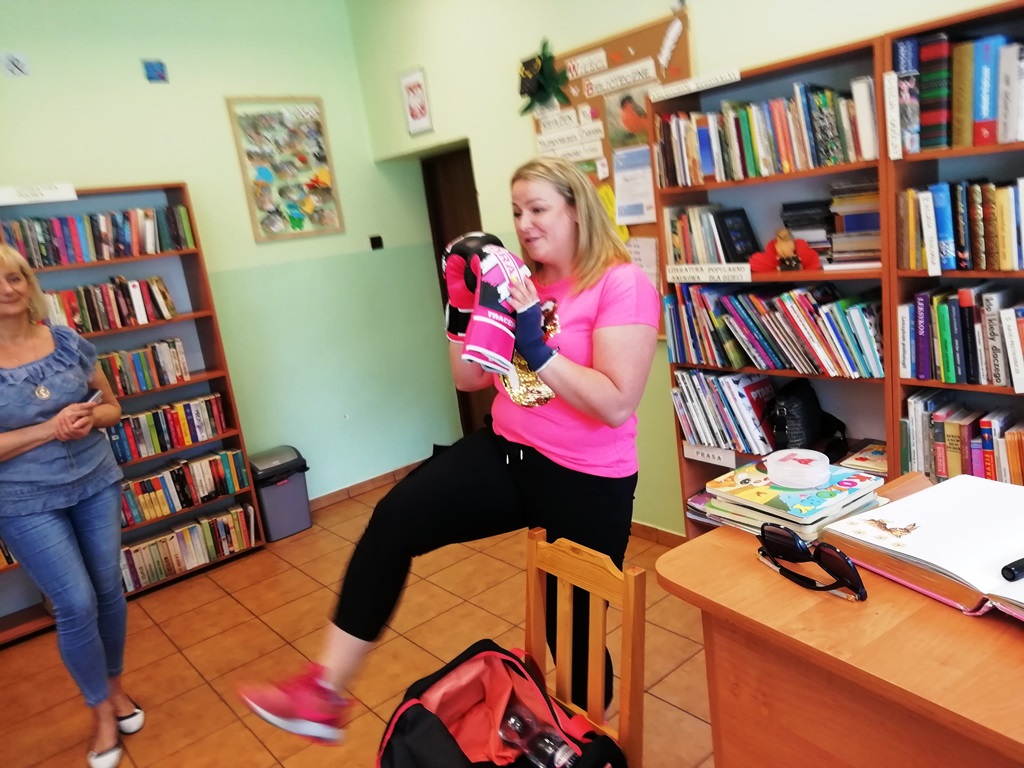 Natomiast do drzwi biblioteki w Żelaźnie zapukała Ewelina Lichwa, która uprawia kick boxing. Większość dzieci z miejscowej Niepublicznej Szkoły Podstawowej nie wiedziało, co to jest ten kick boxing. Po złożonych wyjaśnieniach i prezentacji na temat tej dyscypliny sportu, co niektórzy nabrali chęci do sprawdzenia się w tej sztuce walki. Pani Ewelina przeczytała dzieciaczkom kilka bajek, a komentarz do nich zrobiła dyrektorka Biblioteki. Nie zabrakło również fajnej rozmowy z dziećmi o różnych ważnych dla nich sprawach.
