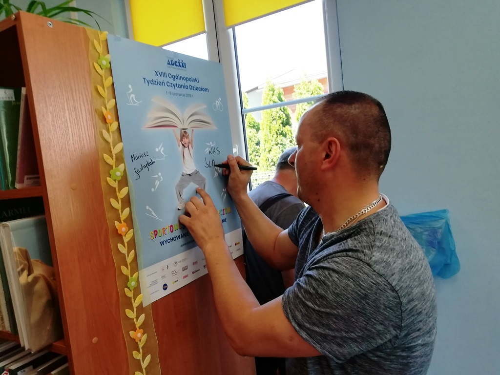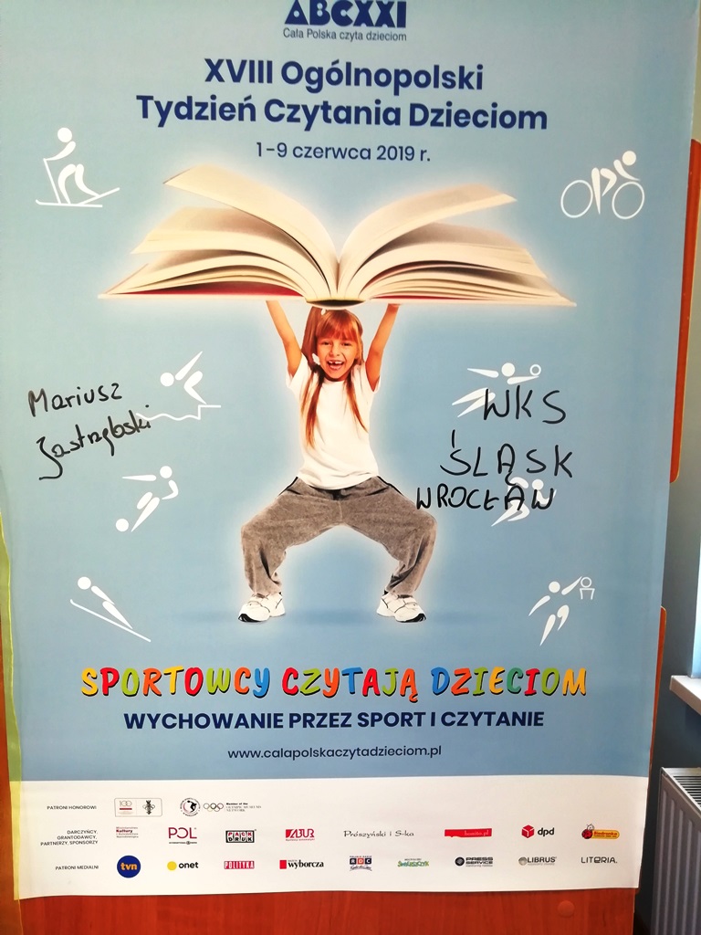 I tak, do biblioteki w Bierkowicach przyjechał Mariusz Jastrzębski, trener Filii WKS Śląsk Wrocław, aby poczytać dzieciom z miejscowego Przedszkola Gminnego. Opowiedział dzieciom o swojej pasji sportowej do piłki nożnej oraz zaprosił na treningi do klubu. Dzieci losowały bajeczki do czytania, które naprzemiennie czytał Pan Mariusz oraz dyrektorka Biblioteki Mariola Huzar. Były też rozmowy na temat bohaterów występujących w książeczkach, a na deser kilka zagadek. Na zakończenie spotkania wspólne zdjęcie i osobisty wpis naszego gościa na plakacie.