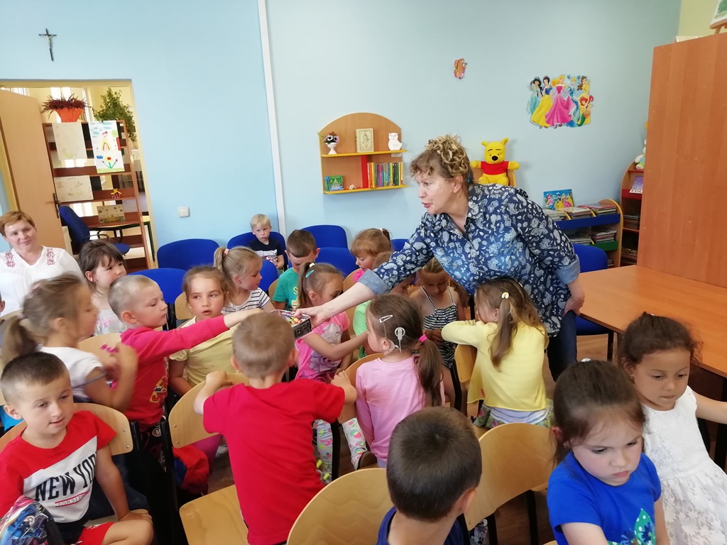 We wtorek w Filii nr 2 w Krosnowicach pojawiła się Natalia Kurzela z Gminnego Ludowego Klubu Sportowego „Orlęta”, gdzie uprawia tenis stołowy. Na młodą sportsmenkę czekały dzieci z miejscowego Przedszkola. Natalię przedstawiła dyrektorka Biblioteki, podkreślając, że jest ona również stypendystką im. Grzegorza Ciechowskiego. Dzieci pilnie przysłuchiwały się czytaniom swojego gościa i pani Marioli Huzar. Na zakończenie spotkania, trójka dziewczynek wykonała subtelny taniec kwiatów. Wszystkiemu przysłuchiwała się babcia Natalii.