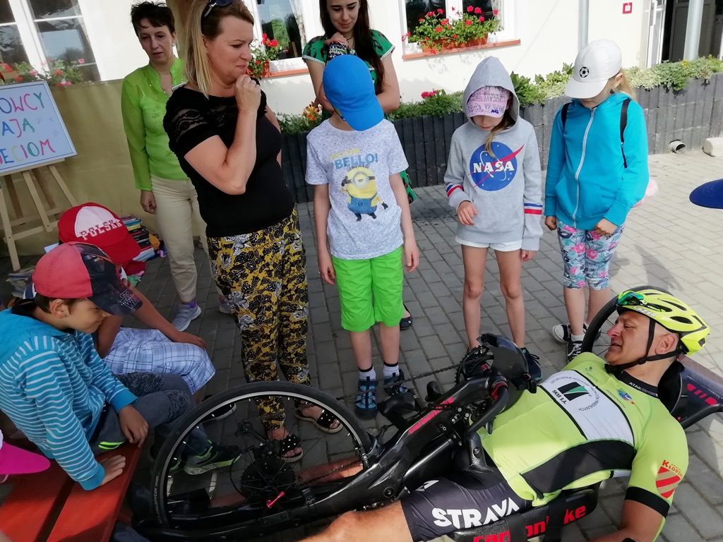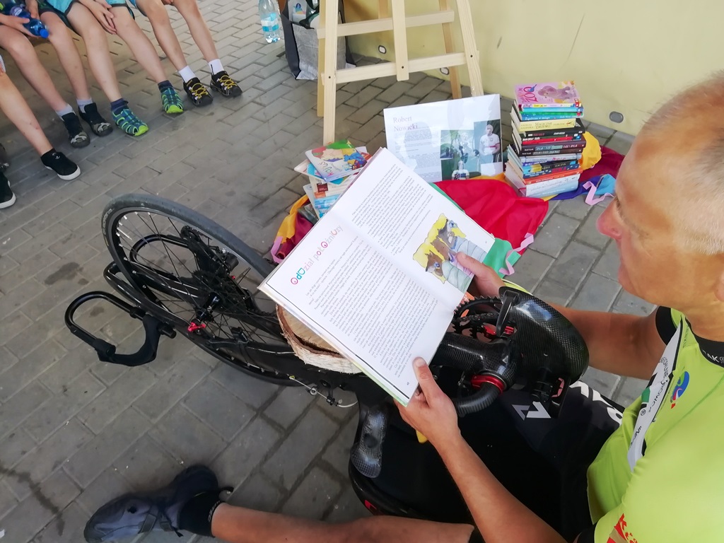 Kolejny przystanek „Sportowcy czytają dzieciom” miał miejsce w bibliotece w Starym Wielisławiu. Do oczekujących dzieci na swoim rowerze przyjechał Robert Nowicki z Bierkowic. Uprawia kolarstwo szosowe niepełnosprawnych. Nietypowy rower i sam sportowiec wzbudziły ogromne zainteresowanie wśród uczniów ze Szkoły Podstawowej nr 2 im. Jana Pawła II, którzy przyjechali na spotkanie z Kłodzka. Pan Robert, w asyście Marioli Huzar i Ewy Włosek przeczytali kilka ciekawych opowiadań z przesłaniem. W trakcie czytań, pani Anna Jasińska zadawała pytania, a uczniowie świetnie sobie z nimi radzili. Potem był plac zabaw i ognisko z pieczeniem kiełbasek.